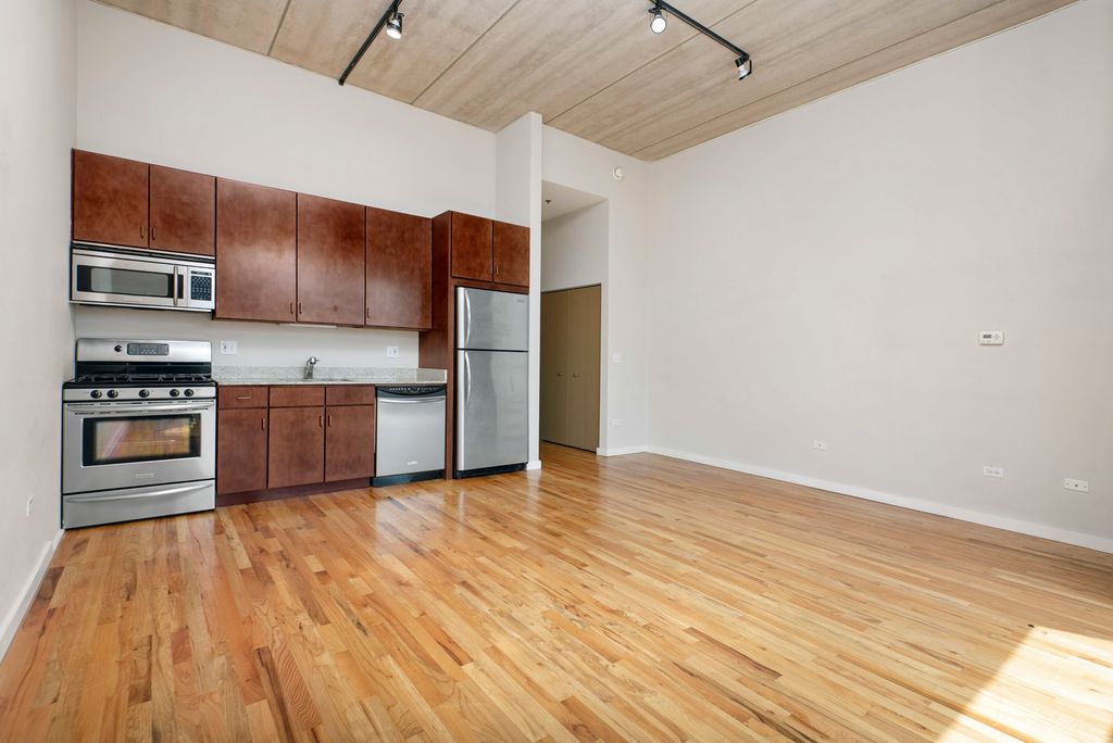 Beautiful, sun-filled, top floor loft! In premier elevator building in the heart of River North. With soaring 10-foot ceilings, striking floor-to-ceiling windows that flood the space with natural light, sleek hardwood floors, and the added benefit of concrete walls and ceilings for superior sound privacy, this quiet, sun-filled studio perfectly balances style and comfort. Entertain in your gourmet kitchen with stainless steel appliances and granite countertops, and relax in your spa bth. Enjoy the convenience of an in-unit washer and dryer, generous closet and storage space, and central air/gas forced air heat that you control. Low taxes and low assessment that includes internet. Unbeatable location steps to groceries, boutiques, coffee shops, restaurants, shopping, the "L" and all that River North has to offer. Premier deeded garage space in attached heated garage is included in the price.