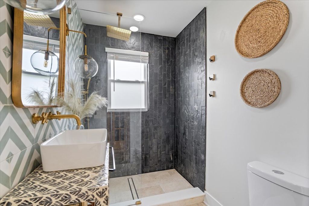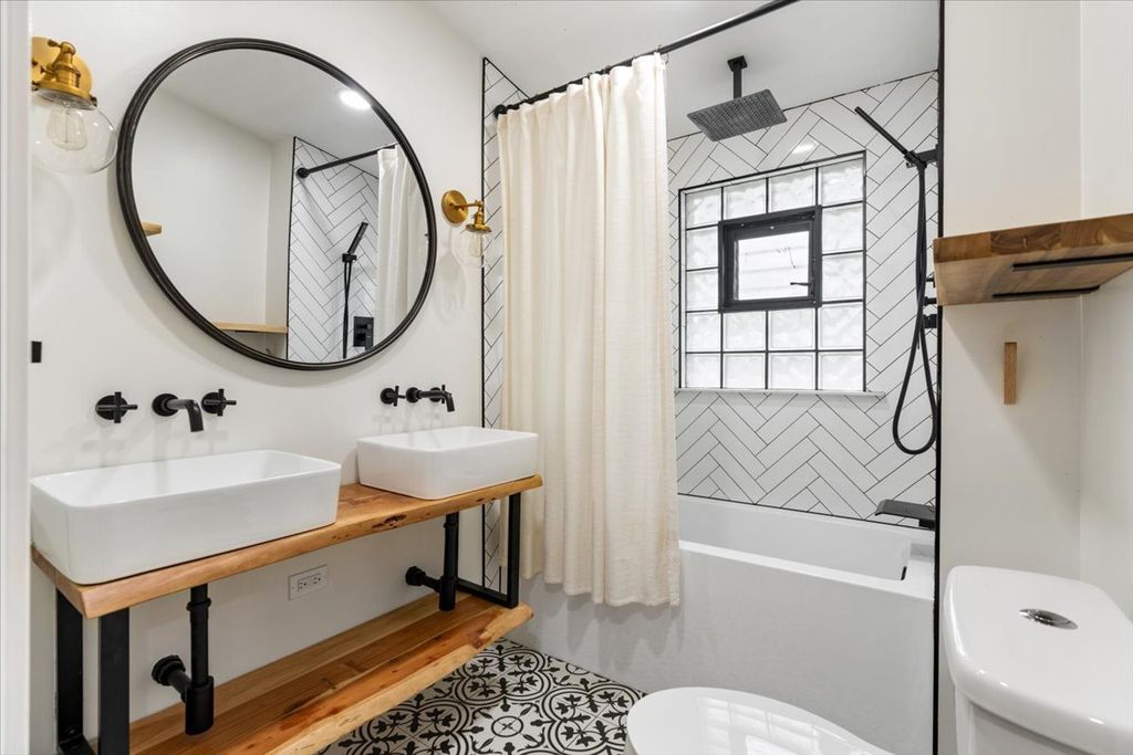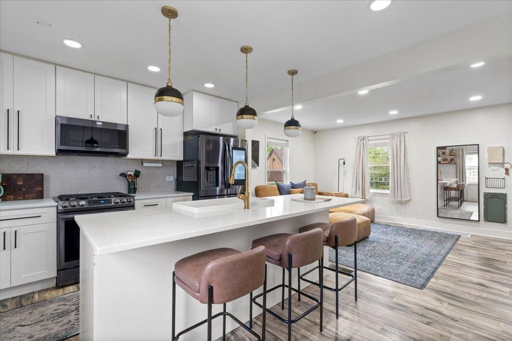 This stunning 4-bedroom, 2-bath home has been thoughtfully updated from top to bottom - just move right in and enjoy. The recently upgraded kitchen features quartz countertop, shaker-style 42" white cabinets, newer appliance package: LG Refrigerator, stove, dishwasher, microwave, and washer and dryer. The main level offers two comfortable bedrooms and a beautifully appointed full bathroom with double vanity, shower and tub - perfect for guests or a home-office setup. The second floor has a large primary bedroom with French doors, a wall closet, a gorgeous 2nd bath with a walk-in shower, and a second bedroom currently being used as a nursery. The full basement with double entry doors is home to plenty of storage space and is a blank canvas ready for your vision - whether that's a rec room, home gym, or additional living space. Fully fenced-in backyard with a newly built deck (2024).