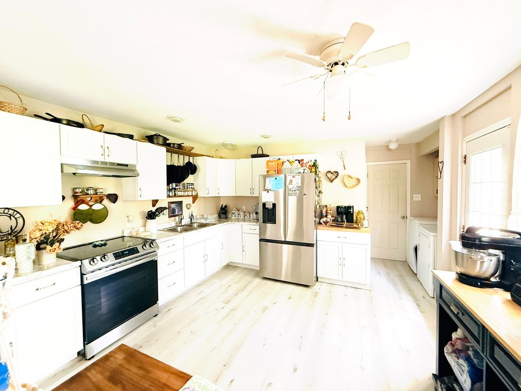 This is the country home outside of Rossville you've been waiting for. Located at a dead-end road, this home has the North Fork of the Vermilion River behind it and is surrounded by woods. The interior has been updated, featuring 3 bedrooms and 1.5 bathrooms. The large living room opens up to the kitchen. The washer and dryer are on the main level, and there is also a partial basement turned into a room. Outside, you can enjoy 1.5 acres and an attached 2-car garage. The outside shed will stay. One of the greatest features is the 2.5-car detached barn with a concrete floor, bathroom, and air compressors that remain. It even has a working freight elevator. Upstairs, there's an air-conditioned loft. The Trek vinyl decking adds a nice touch. All room dimensions, square footage, and year built are approximate.