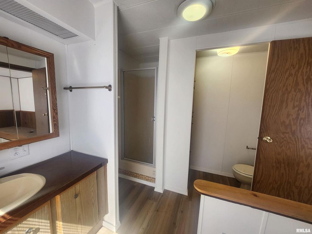 Clean affordable living in this nicely updated 2 bedroom 2 bath home - features spacious LR open to DR and kitchen combo - private master bedroom with full bathroom and nice closet space - equipped kitchen with separated dining -freshly painted white walls with laminate flooring - wood cabinets and windows - vinyl siding - storage shed - 3.5 lots - concrete slab plus block foundation -nicely located convenient to Crab Orchard Lake - Carterville school district