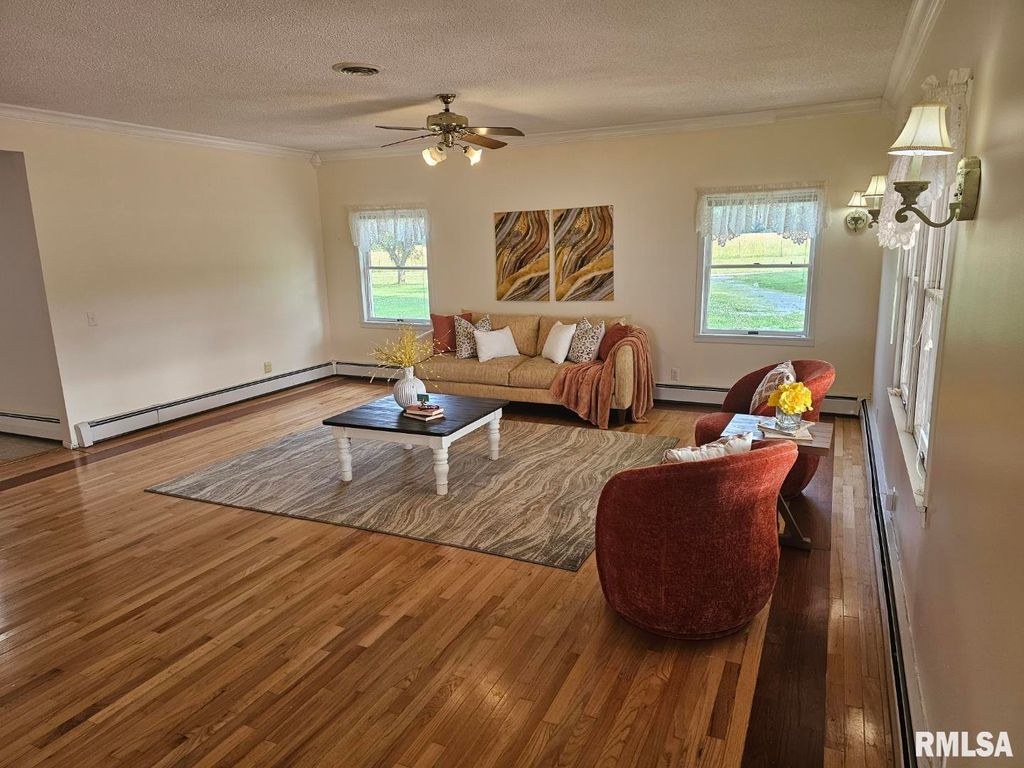Spacious Ranch Home with 3 Buildings on 3.49 Acres - Country Living at Its Best! Enjoy peaceful country living with this beautifully maintained ranch home situated on 3.49 acres. This property offers a 3-car garage, three versatile outbuildings, and plenty of space for gardens, animals, and outdoor activities. The home features a spacious family room with wood flooring and a second living area complete with a fireplace insert and ceramic tile flooring. The kitchen showcases custom oak cabinetry and comes fully equipped with appliances, while the formal dining area includes a coffee bar and walk-in closet-a flexible space that could easily serve as a fourth bedroom if desired. There are three cozy bedrooms with hardwood flooring, and two full bathrooms, including one with a large walk-in ceramic tile shower. Step outside to enjoy the large, covered deck, ideal for relaxing or entertaining. Outbuildings include: A 36x48 pole building, perfect for storing large equipment, A 30x42 pole building, great for a workshop or hobby space, A third utility building for extra storage. This property offers the perfect blend of comfort, functionality, and outdoor charm-just waiting for you to make it your own!