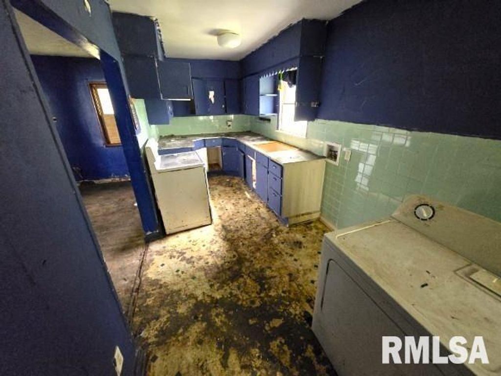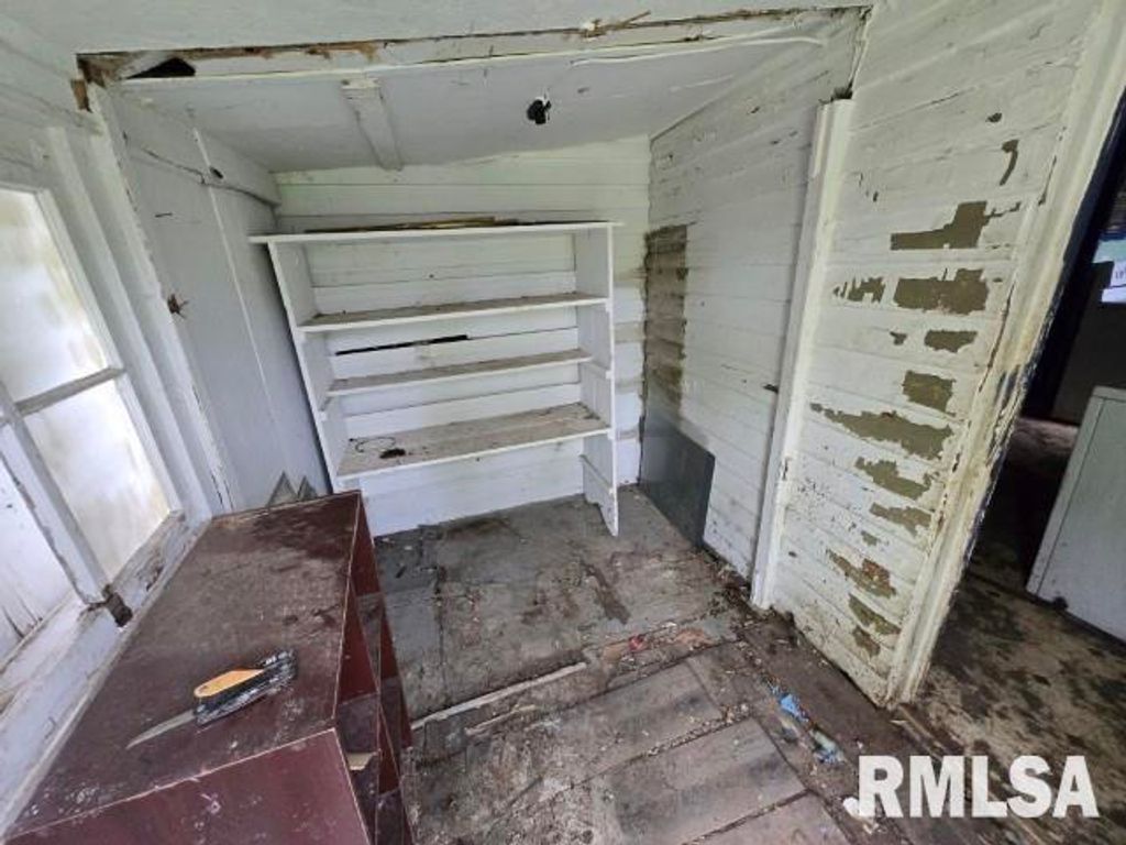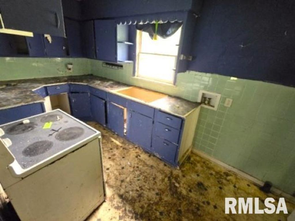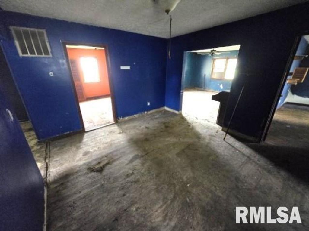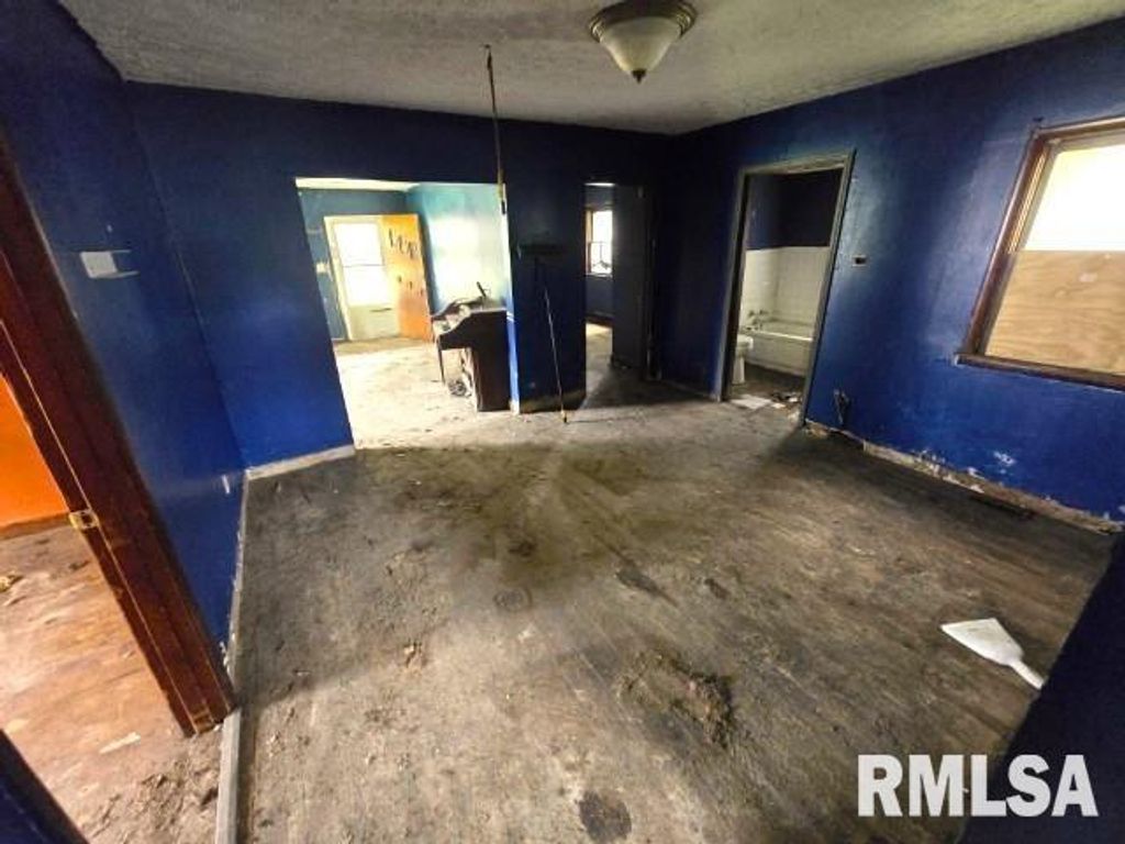 Rehab enthusiasts this one is for you. Invest a small amount of money but a large amount of sweat equity and you can turn this one around for profit. Two bedrooms, one bath, and the large Living Room and Dining Room may offer space to convert to a third bedroom. The Kitchen and informal dining are along the back of the house. A corner lot location, covered front porch and empty lots surrounding the home. At least kick the tires to see if it's project worthy before someone else drives away with it!