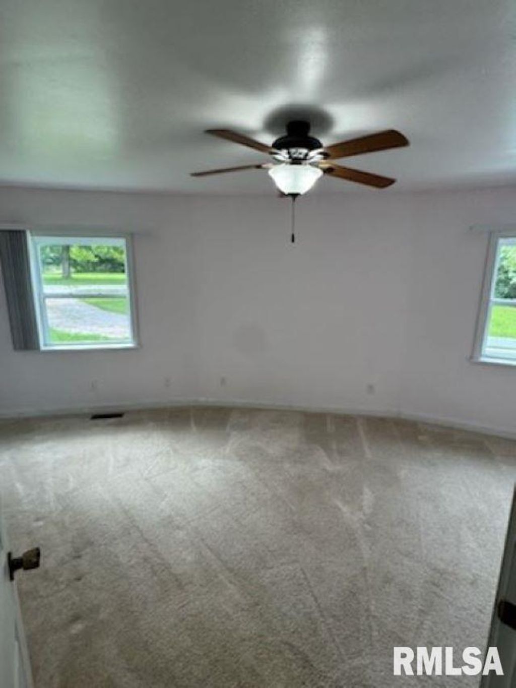 PRIVATE 53 Acres, a rare opportunity to own a Custom built home, Step inside to see Panoramic views of the water, land and wildlife and each season of the year, Open floor plan feels spacious and is full of natural light, per assessor, this home has 1558 square feet of living space, 2 bedrooms, 2 full bathrooms, move in ready, vaulted ceilings, original Hardwood Floors & Kitchen Cabinets hand crafted from the oak timber on site, step right out your door to fish, hunt or relax and enjoy the views of your own private oasis. The land is a mix of timber and open ground, currently in hay production, room dimensions are approximate, due to the curvature of the outer walls, this is MUST SEE property, pictures and words cannot do it justice, Field Grade School, Mt Vernon High School, and is located near Miller and Jaycee Lakes