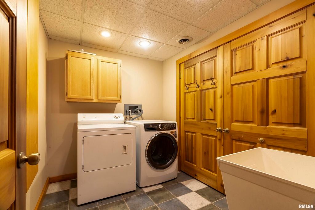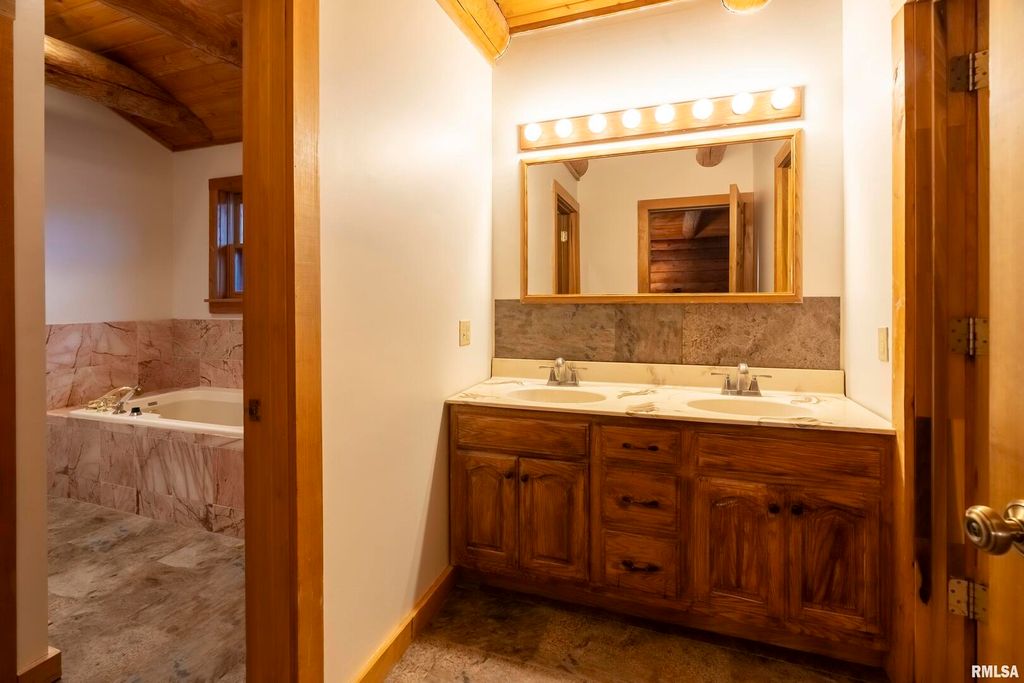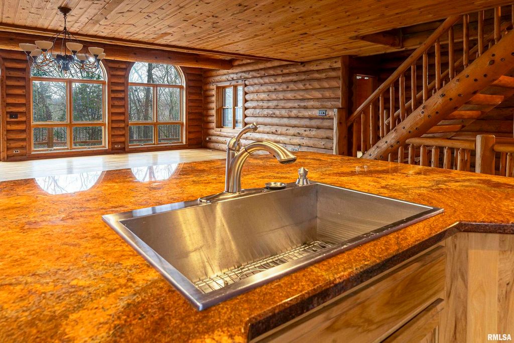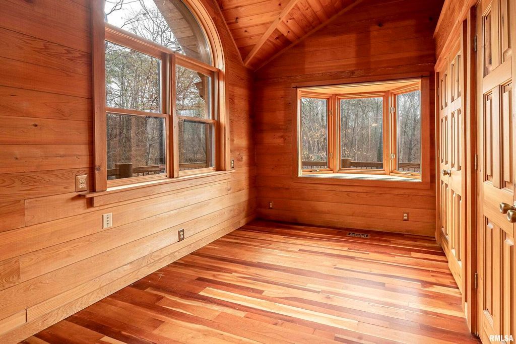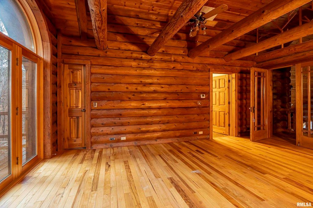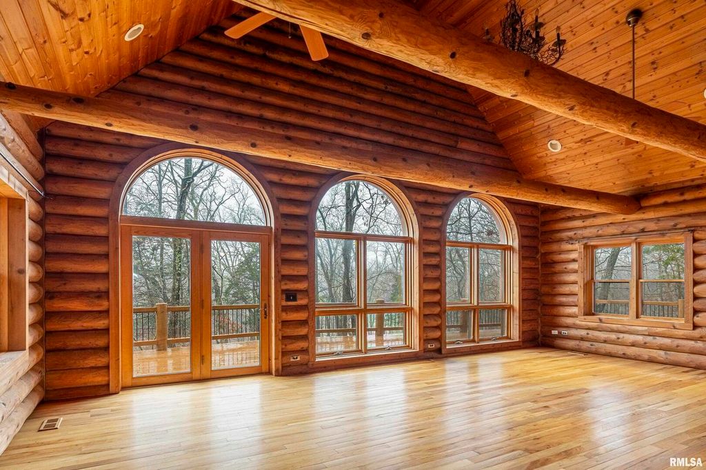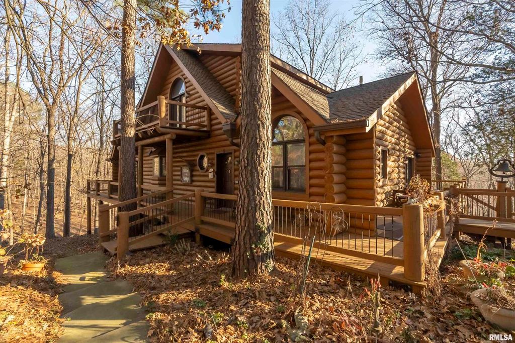 Escape to your own private paradise with this stunning log cabin-style home, perfectly perched on 9 acres of serene woodland overlooking Cedar Lake. Designed for both everyday living and unforgettable entertaining, the open-concept main level welcomes you with a soaring vaulted great room and a chef's dream kitchen featuring a Viking range, Sub-Zero refrigerator, deep farmhouse sink, quartz countertops, and an expansive island bar. The two-story layout offers a private upstairs primary suite, creating a peaceful retreat, while the fully finished walk-out basement provides a massive family room, multiple bedrooms, and abundant storage-perfect for guests or family living. A main-floor office and large walk-in pantry add convenience and functionality. Step outside to a full wraparound deck overlooking your wooded oasis, gently sloping down to the lakefront, ideal for morning coffee, evening sunsets, or entertaining friends and family. Built with modern construction techniques but finished in classic log style, this home delivers timeless cabin charm paired with modern reliability. High-end finishes, serene surroundings, a whole-house generator, and all appliances included make this home truly turnkey. Located in the desirable Unity Point School District, it offers privacy, space, and style-a dream retreat for families of any size.