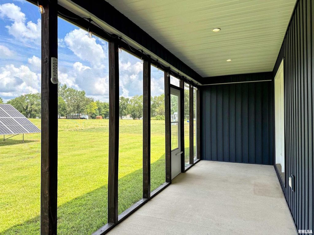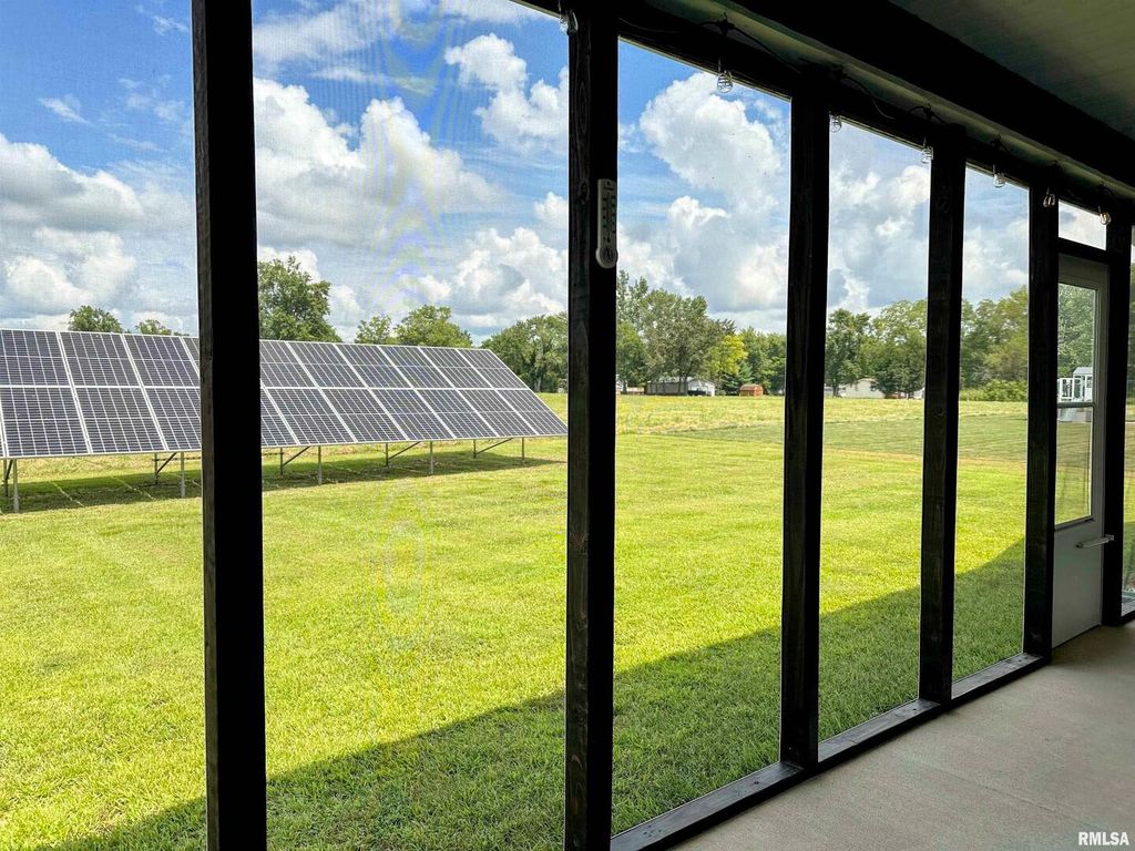 Experience year round sophisticated comfort for only around $14 a month in this Carterville gem featuring fully owned solar. Other highlights include a storm-rated tornado shelter, whole-home propane generator, discreet 250 gallon underground propane tank, EV charging station & more! On arrival, the white marble rock landscaping glimmers in the sunlight creating a striking contrast against the dark siding. Inside, you're welcomed with an open living space accented by lofty soaring ceilings, pristine hardwood flooring, and a gas fireplace, making the perfect backdrop for entertaining loved ones. Your dream kitchen awaits with stainless steel appliances, gleaming stone countertops, soft close cabinets and under cabinet lighting, a full pantry, large island with seating, and a designated dining area. The master suite offers recessed lighting, backyard views and a walk-in closet offering ample wardrobe storage. The ensuite bath is a true spa retreat, with a new smart bidet, soaking tub, walk-in shower, and dual vanities. Both secondary bedrooms have walk-in closets and the hall bath is perfectly contemporary from tile to fixtures. Relax in the tranquil 3-seasons room or the sleek screened-in porch with new screens and delicate bistro lights. Laundry is a breeze with a new LG washer/dryer and folding space. A pristine, oversized 2-car garage completes the home with high-end functionality. Please include any and all buyer requests in the offer to be presented for consideration.