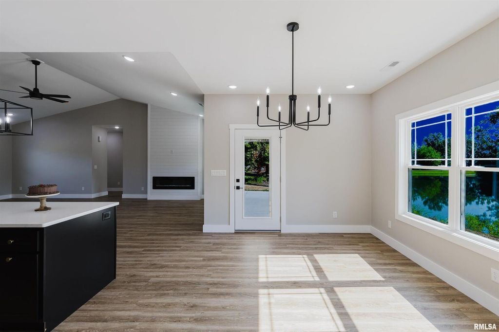 Step into this beautifully crafted, brand-new home and immediately fall in love with the peaceful water views showcased through the expansive back windows. Designed with both style and function in mind, this open-concept home features vaulted ceilings and 9-foot ceilings throughout, creating a bright and airy atmosphere ideal for everyday living and entertaining. The heart of the home offers rich wood-tone cabinetry paired with a striking black work island, a convenient coffee bar, and a spacious butler's pantry-perfect for hosting or daily organization. Durable hard-surface countertops, a beautiful tile backsplash, and brand-new stainless-steel appliances complete this thoughtfully designed kitchen. The split floor plan provides privacy and versatility. The spacious primary suite features elegant tray ceilings and a spa-like bathroom with dual vanities, a stunning tiled shower, and a generous walk-in closet. An adjoining flex room offers endless possibilities as a home office, nursery, or cozy den. On the opposite side of the home, two generously sized bedrooms are connected by a Jack-and-Jill bathroom. Enjoy peaceful mornings and relaxing evenings on the covered back porch while taking in tranquil waterfront views. The oversized 3-car garage provides abundant storage with space for vehicles, tools, attic storage, and even a storm shelter. Additional upgrades include an EV charging plug and a 100-amp service already in place for a future dock, pool, or hot tub-whatever your lifestyle may call for. This is a rare opportunity to own a stylish, functional waterfront retreat in the heart of Carterville. Don't miss your chance to make this exceptional new construction home yours.