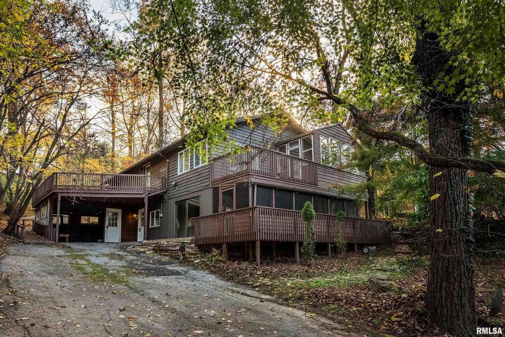 Welcome to 270 Contentment Rd, a stunning 4-bedroom, 3-bathroom retreat nestled in the highly desirable Midland Hills Country Club neighborhood of Makanda, IL. Combining serene lake views, modern updates, and timeless charm, this home offers a perfect blend of comfort and elegance in a private, nature-rich setting. The main floor features an open-concept living, dining, and kitchen area designed for entertaining or quiet family living. The renovated kitchen boasts stainless steel appliances, ample storage, and a custom cypress bar that adds warmth and character. A versatile bonus room doubles as a second family room or guest suite, complete with a full bath and direct access to a spacious screened-in porch overlooking tranquil, wooded surroundings. (Property is on leased land.) Upstairs, four generous bedrooms and two full bathrooms provide comfort and convenience. The primary suite impresses with an en-suite bath and private access to both a balcony and greenhouse. Bedrooms two and three share a massive deck, perfect for morning coffee, stargazing, or soaking in the peaceful lake views. The upper level also includes laundry facilities and a mudroom at the back entrance for added practicality. The setting is as extraordinary as the home itself. Enjoy a quiet, wildlife-rich community with lake views and exclusive amenities, including a private stocked pond, sandy beach, and clubhouse.