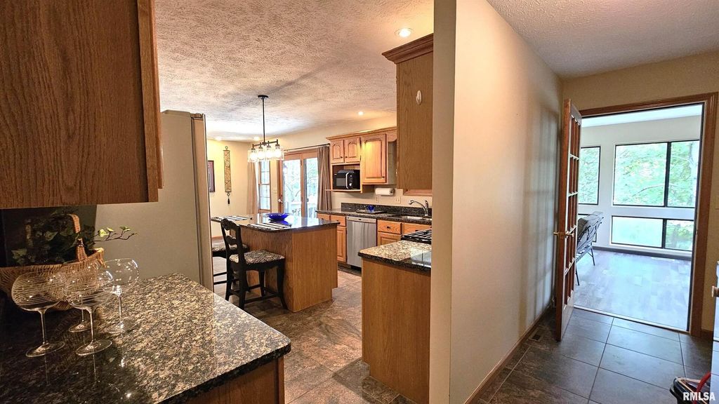 Discover serene lakeview living with this charming one-story home with a walk-out basement, located on two lots at Lake of Egypt in Marion, Illinois. The property welcomes you with a screened-in front porch and a koi pond, creating an immediate sense of peace. Inside, the large living room features a cozy ventless gas fireplace, while the modern kitchen boasts updated cabinetry, appliances (new in 2010), and a unique instant hot water faucet. A 4-season sunroom with a second gas fireplace overlooks the backyard, offering tranquil views and access to the back deck-ideal for relaxing or entertaining. The main level offers three spacious bedrooms, including a primary suite, plus a beautifully updated full bathroom with a jetted tub (with heater) and separate shower. Downstairs, the finished basement includes laundry, a versatile bonus space with closets, and walkout access to the covered patio. This area can easily serve as a family room, rec room, or additional bedroom and includes a fireplace insert for added warmth. Outdoors, enjoy the spacious backyard shaded by mature trees, a rear deck for grilling, and a lower-level patio with a concrete floor-perfect for gatherings. The finished two-car garage adds convenience, while the double-lot setting provides room to spread out. Whether you're looking for a permanent residence or a relaxing getaway, this Lake of Egypt home offers comfort, versatility, and peaceful lake living.