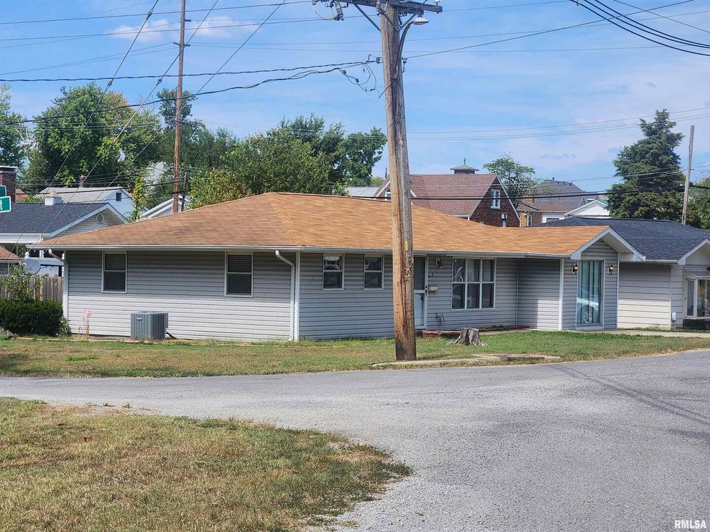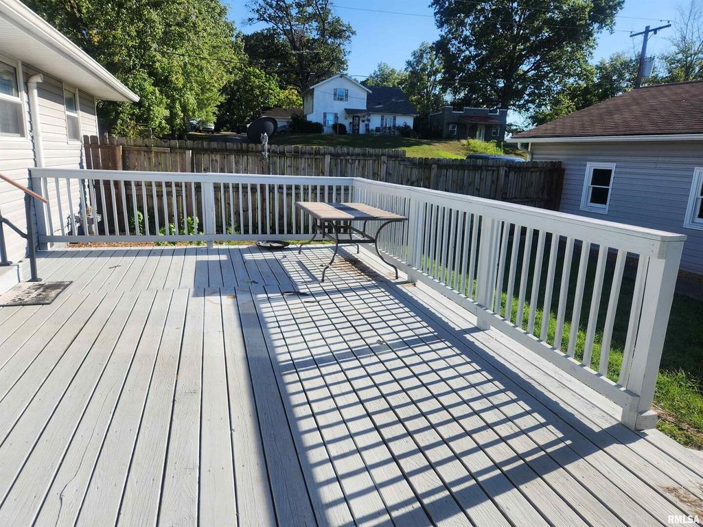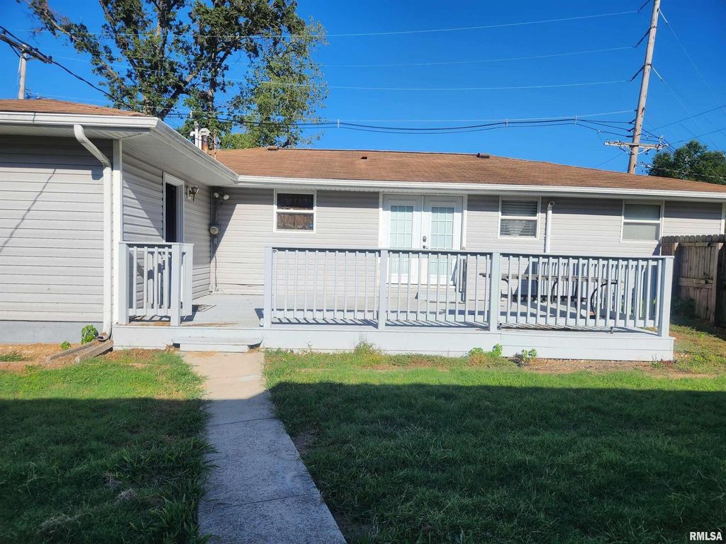 One level living in great location - 2-bedroom ranch with possible 3rd bedroom in den with large closet - good floor plan offers spacious rooms - formal LR AND DR with updated laminate flooring - equipped kitchen with clean appliances - breakfast nook - large utility room with shower plus full dated hall bath -entry foyer with double closets - Situated on corner lot with privacy fenced back yard offering deck and covered patio off 2 car garage -