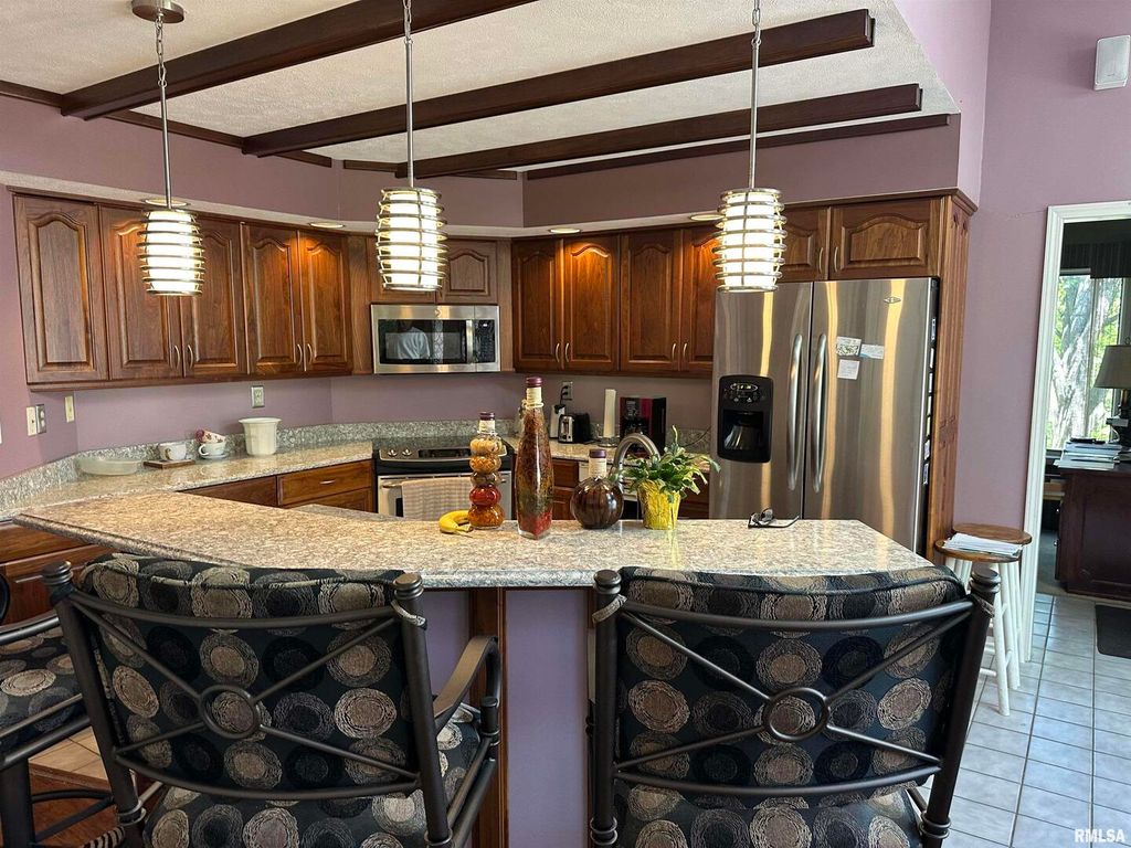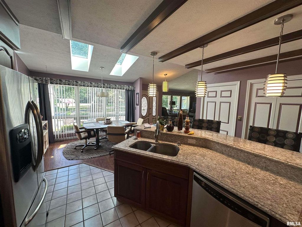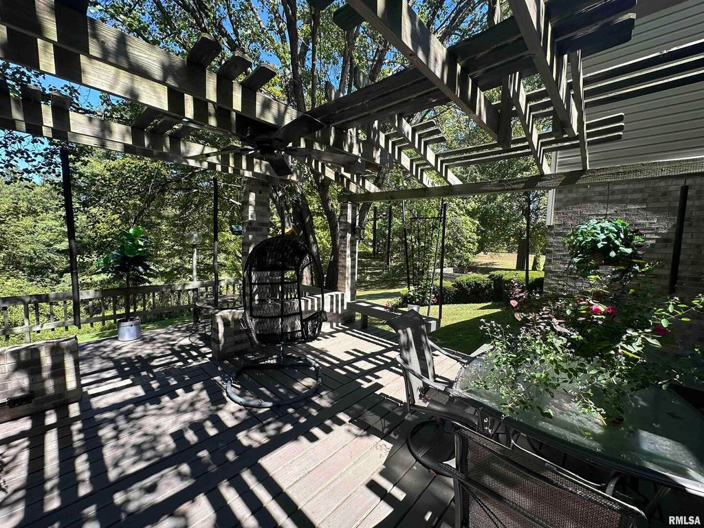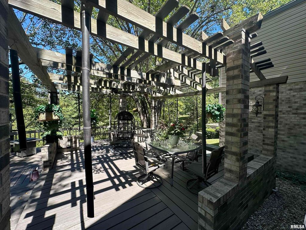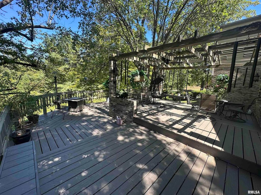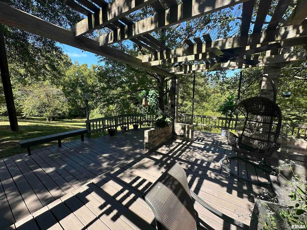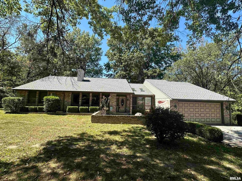 Step inside this thoughtfully designed 4 bedroom brick ranch with custom details throughout. Enjoy the warmth of the 2 wood fireplaces, elegant accent lighting, and built-in surround sound perfect for entertaining. Beautiful kitchen with granite countertops, cherry cabinets, breakfast bar, pantry and stainless steel appliances. The primary master bedroom suite is a retreat with 4 closets, double vanity, jet tub, sky lights and walk-in shower. A guest bedroom sits privately apart with it's own bathroom. There are 2 more bedrooms that share a Jack and Jill bathroom and one has a loft that makes a perfect place to read with the built in shelves. This home has everything you could want and more. There is a 2 car attached garage and a detached matching brick garage fully insulated all on 5 acres. Step outside to your backyard and enjoy the wildlife on a 3 level deck with pergola perfect for relaxing, the mature trees offer beauty and shade. Roof new in 2020, main furnace is 2 yrs old, smaller hvac unit and a tankless water heater are new. Well insulated and low utilities. Most furniture will be available for sale.
