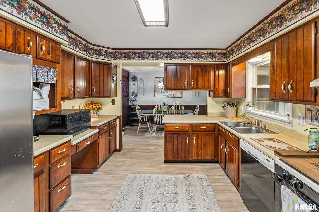 Located on a peaceful cul-de-sac, this spacious 4-bedroom, 2-bathroom house offers over 1,800 square feet of comfortable living space, perfect for families or those seeking a serene neighborhood. As you step inside, you are greeted by updated laminate flooring that flows seamlessly throughout the home, creating a warm and inviting atmosphere. The spacious layout features a large kitchen that is a true culinary delight, complete with ample storage and a convenient breakfast bar, ideal for casual meals or entertaining guests. Natural light floods the living area, providing a bright and airy space that enhances the home's charm. The generously sized bedrooms offer flexibility for family needs, whether it's creating a peaceful nursery, a productive home office, or accommodating guests. The two full baths are thoughtfully designed, providing both functionality and style. Each space has been carefully maintained, allowing you to move in with ease, knowing that the essentials are already taken care of. One of the standout features of this property is the large private deck in the backyard, where you can unwind and enjoy serene views of the park-like setting. The outdoor space is perfect for summer barbecues, morning coffee, or simply basking in the tranquility of nature. The home includes a one-car garage and an additional detached one on back of property.