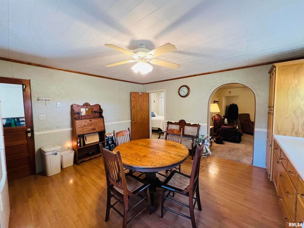 Charming 2-bedroom, 1-bath home situated on approximately 1.5 acres just outside of town. Spacious eat in kitchen, living room, two bedrooms, and a bonus room that can be used as an office or hobby room. The basement is unfinished. It has a wood burner that has not been used. There also is a shower located in the basement. Plenty of room for storage. Updates include brand new siding, shutters, a new roof, and septic lines all done in 2025. Outside, enjoy the open yard and mature trees, along with a detached single-car garage and two additional outbuildings, once used for chickens and small livestock offering endless potential for storage, workshops, or hobby farming. The garage doors were also recently replaced.