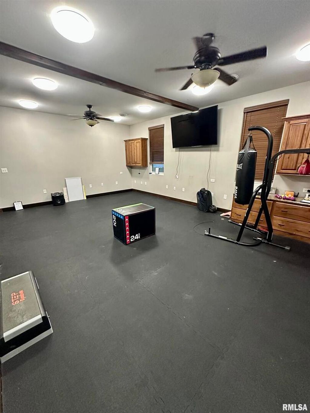A rare opportunity to live, work, and build your dream all under one roof! This incredible 6,600 sq. ft. property offers the space, flexibility, and foundation to run multiple thriving businesses centered around health, wellness, and better living-while also providing a place to call home. Currently set up as a wellness and fitness retreat, it features a gym with infrared saunas, locker rooms, and showers, massage and aesthetic suites, and a peaceful client lounge. The event area includes a fireplace, full kitchen, snack bar, and dual restrooms, perfect for workshops, gatherings, or private classes. The back section provides five office/studio spaces, a second kitchen, and areas ideal for studio apartments, therapy rooms, or daycare. Outside, enjoy multi-level patios, a stone oven and outdoor kitchen, and ample parking beneath mature trees. Modern comforts include heated concrete floors stamped with a wood look, radiant floor heat, central air, fiber internet, and city utilities. This is more than property-it's a path to independence, community impact, and a life built around wellness and purpose just outside Casey.