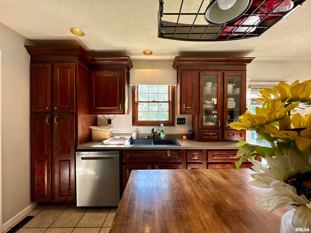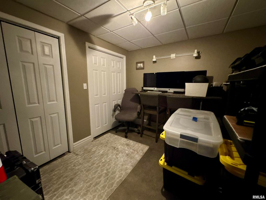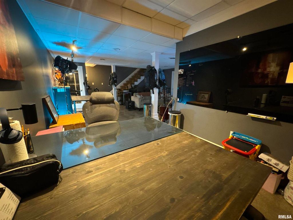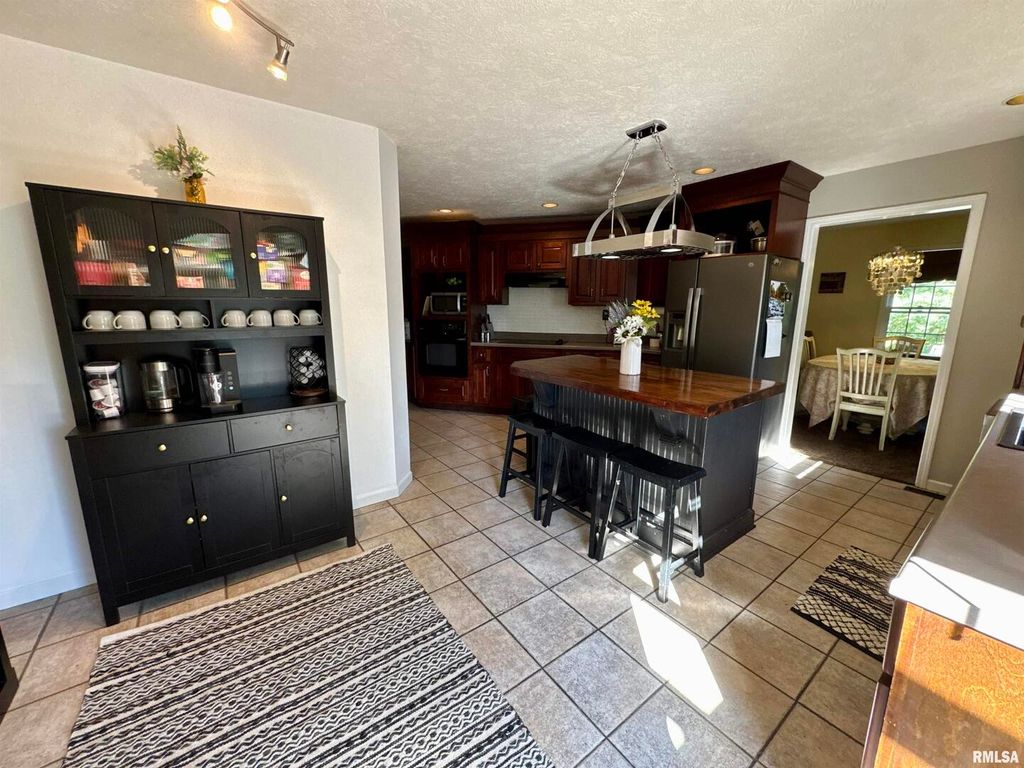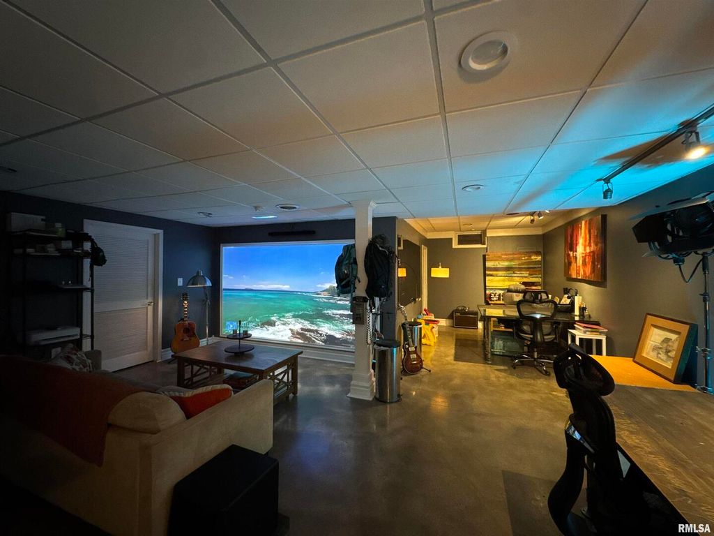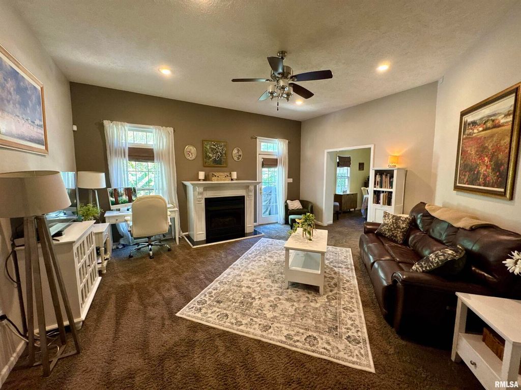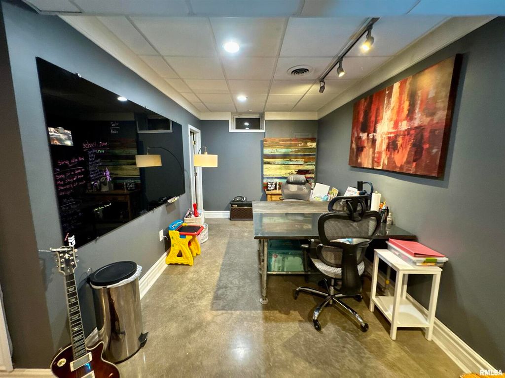 This stunning home offers impressive features both inside and out. The brick front adds timeless curb appeal and opens to a welcoming foyer with 10-foot ceilings, elegant columns, and a beautiful chandelier, creating an inviting entrance. The great room boasts soaring 11-foot ceilings and a cozy gas fireplace, perfect for relaxing or entertaining guests. The main level includes three spacious bedrooms, while the finished basement features an additional bedroom or craft room, along with a large family room or home theater, ideal for movie nights and gatherings. A unique hidden door provides discreet, easy access to the basement, adding a touch of charm and practicality. The fenced backyard provides a safe and private space for outdoor family fun and activities. With two garages, there's ample space for vehicles, storage, or hobbies. One garage is heated and features an epoxy floor. This home combines comfort, style, and functionality - a must-see for anyone seeking a versatile and beautiful residence