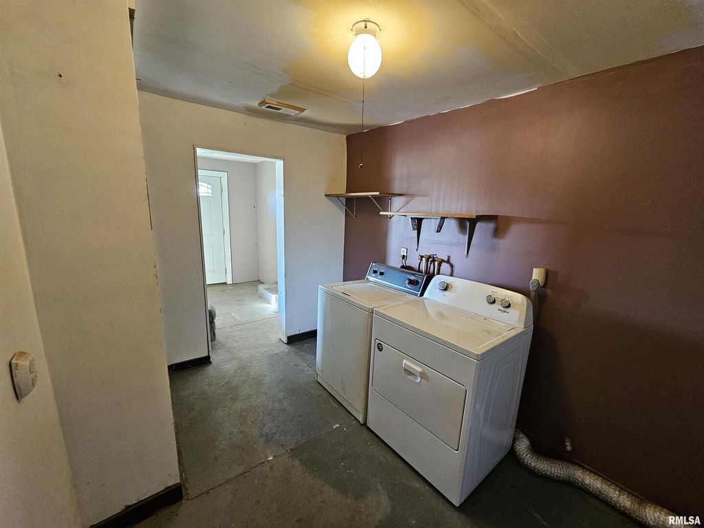 Charming 3-bedroom bungalow featuring a cozy living room with newer carpeting and a kitchen with updated vinyl flooring. The spacious third bedroom offers versatility-perfect as a family room-with a large closet for extra storage. Enjoy the convenience of a laundry room connected to an enclosed breezeway. Property includes a detached garage plus a 20x24 detached hobby shop. Beautifully landscaped with flowers, this home offers city water, sewer, and gas, providing the comfort of small-town rural living with modern conveniences.