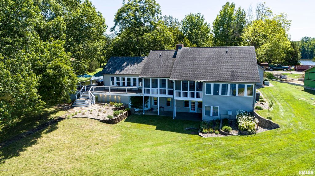 Experience luxury lakefront living in this extraordinary five-bedroom home, perfectly positioned on 300 linear feet of pristine shoreline! Amazing sunsets! Perfect for entertaining with 5 bedrooms, 5 bath, and 5 car heated/cooled garage area with a kitchen and bathroom perfect for get togethers! Close to the ski area with deep water and a no wake zone to enjoy swimming. You can also watch the sunsets in the outdoor sauna. House was renovated in 2016 to add a master suite, large deck, garage additions with an extra room above the garage and a kitchenette area (the is moveable) in the garage for entertaining. The house has a spacious open floor plan to host guests! The laundry room has two sets of washer and dryer and a laundry hook up upstairs available. The spectacular finished basement has a large family room that walks out into a beautiful landscaped yard. All appliances in house and in garage kitchenette stay. Furnishings in interior could say if buyer requests. New roof in August 2025.