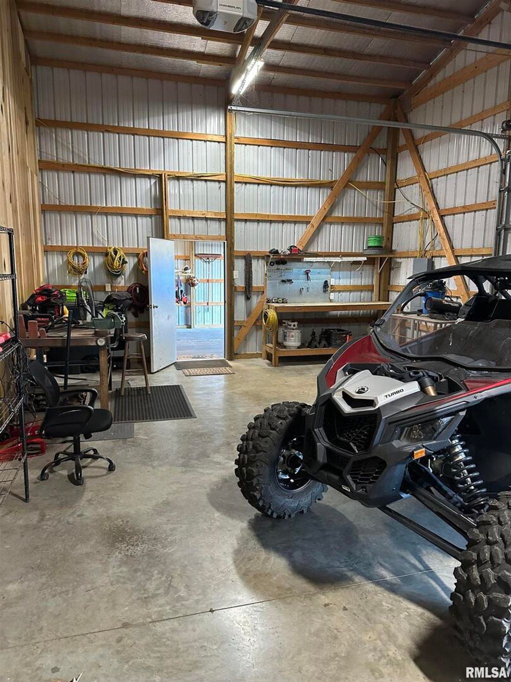 This 40 x 60 pole barn home built in 2016 by Johnson & Johnson is situated on 3.34 acres out in the country surrounded by farm fields. Many great options here including adding another bedroom or even adding a home to the North. This 1 bedroom home also has a 2 car garage and an enclosed lean to with concrete double doors. A drain has been built in the floor. New aeration system. Home has stackable washer and dryer that are staying. You can sit out under the covered porch and enjoy the country side or cozy up next to the fire pit. The house has 200 amp service and the pole barn also has 200 amp service.. Beautiful flooring throughout the home. Move in ready for new owners!