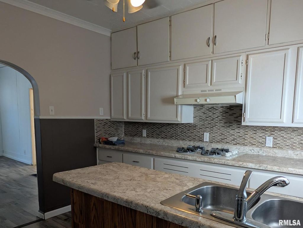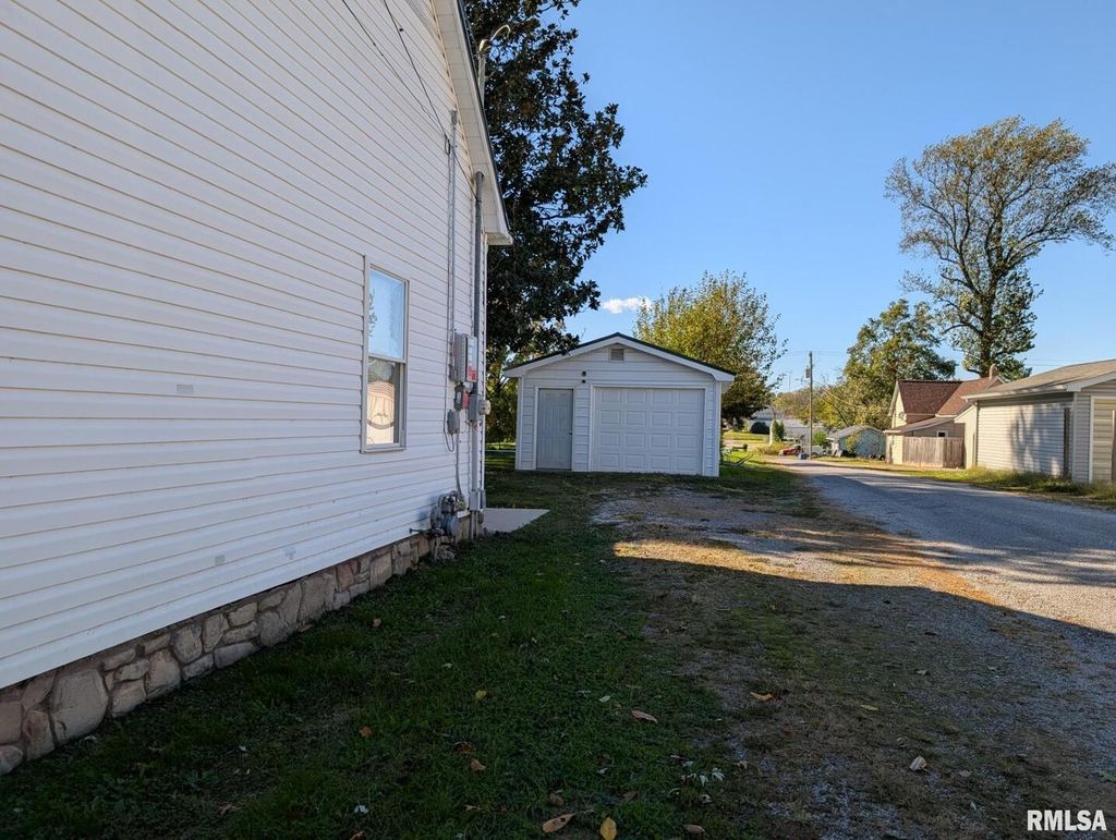 This neat 2 bedroom house is move in ready with many updates. Has a metal roof, vinyl siding, replacement windows, insulation and wiring. Freshly painted living room and dining room. The kitchen has updated countertops and back splash and includes appliances. The walk in closet in main bedroom has laundry hook up as well as one in the basement. Shed not included but can be purchased separately.