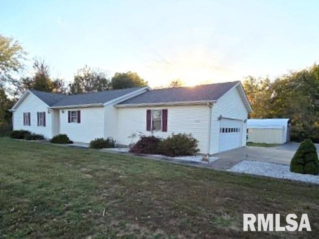 This location on the east edge of town gives a nice rural setting with convenience. The Ranch-style 3 bedroom, 2 bath, 2-car garage home has been well maintained and will come with about 2 acres. The open floor plan has luxury vinyl plank providing a nice accent and running through the Living Room, Dining and Kitchen. The Living Room/Dining Room combination provide functional space. Plenty of countertop and cabinets plus a large island AND a pantry make this a five-star Kitchen. Graduating sizes of bedrooms are found along the single hallway in this home, each with substantial closet space. The Master Suite includes two walk-in closets, the full bath and a nice location in the back corner of the home. A laundry room (washer and dryer will remain) and two-car garage on one end complete the interior space before heading outside. Enjoy a smooth drive onto the property down the asphalt-paved driveway. A wood deck on the rear of the home has been prepared for new owners to add paint or stain. A metal storage shed has work space and houses the whole-house generator for the home. A partially enclosed carport sits at the end of the driveway for additional equipment storage. A new aerator septic tank was installed in 2021. This property is great for beginner to advanced homeowners with many amenities.