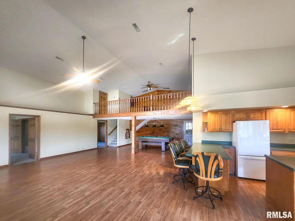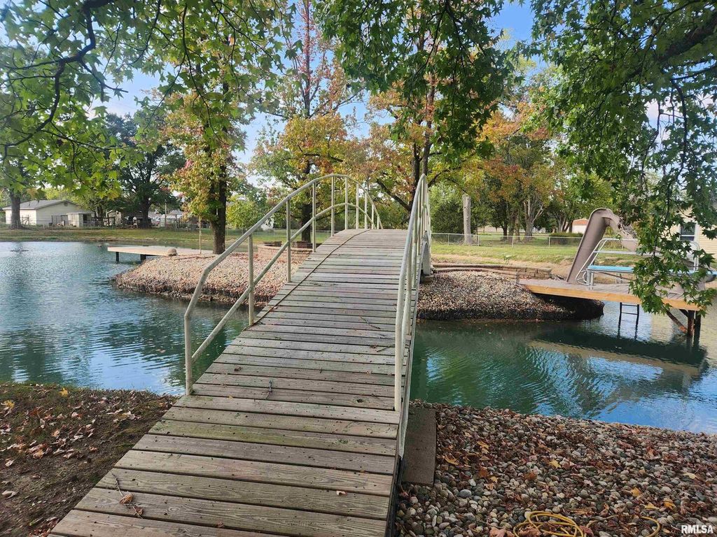 One-of-a-kind property blending private lake home and home business opportunity - behind the pass code entry gate you will find this custom-built oasis offering peacefully tranquility on your very own STOCKED lake with island - featuring dock, diving board, slide, bridge and fountain - 1.5 story home with exceptional water view from front and side wrap porch - offers space for 3 possible bedrooms and 2 full baths with upper additional rooms having spacious closets - loft overlooking spacious open LR and kitchen combo - Super-duper sized heated garage and private workout room containing over 3000 s.f. - 12' overhead door makes easy access for RV and boat storage - roughed in plumbing for additional bathroom - gas line available for your customized fireplace - well planned home with abundance of super features - placed thousands below replacement and well maintained make this property a must see