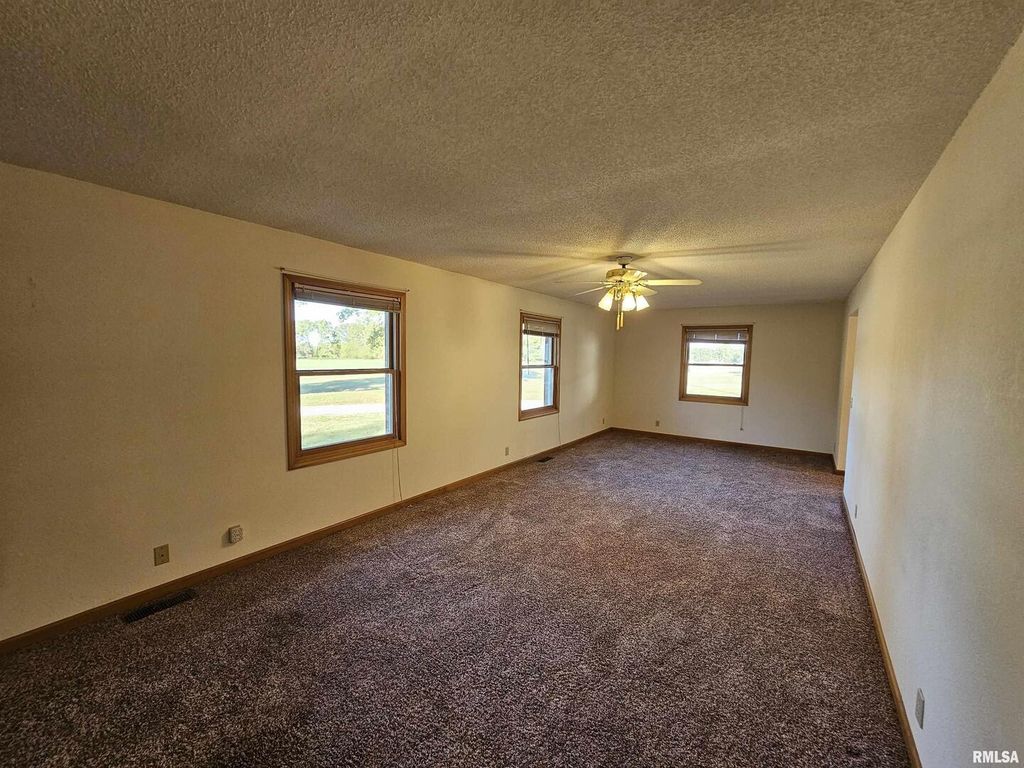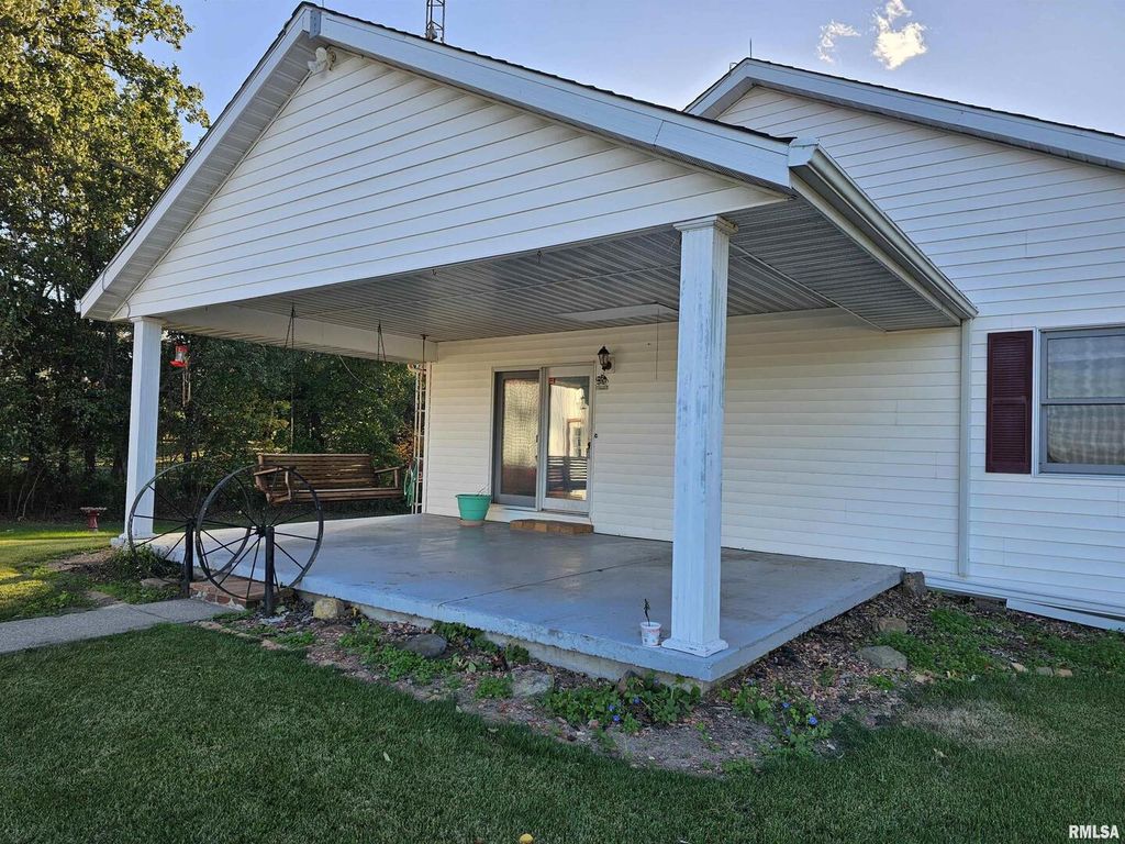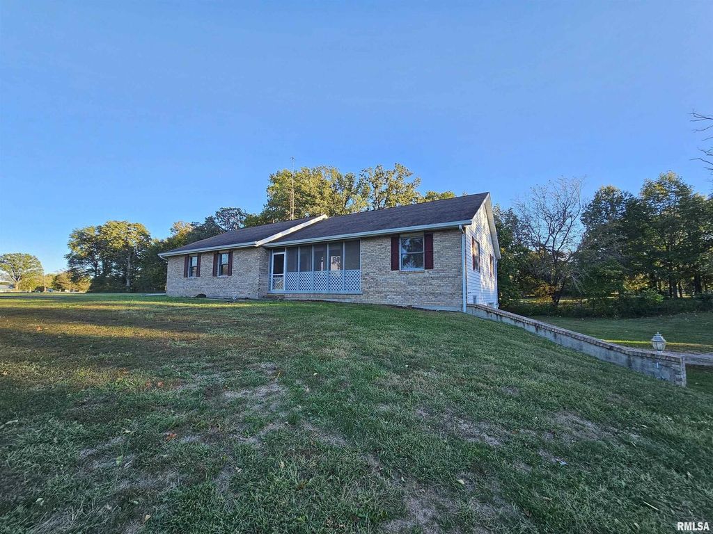 Partial Brick Ranch on 5 Acres with Walkout Basement & Outbuildings ! Beautiful partial brick ranch with a finished walkout basement situated on 5 scenic acres. The main level features a spacious living room with an adjoining dining area, and a large kitchen showcasing warm wood cabinetry, ceramic tile flooring, abundant counter space, and included appliances. The master suite offers a private bathroom and walk-in closet, while two additional bedrooms share a second full bath along the hallway. Convenient main floor laundry. The finished walkout basement includes a comfortable family room, a large recreation area that could easily be divided for a fourth bedroom, and a safe room with its own bathroom-perfect for storm protection or extra storage. Enjoy the attached garage with workshop space, plus a 32x40 detached building with two overhead doors, ideal for hobbies, vehicles, or additional storage. A small utility shed provides even more space for outdoor equipment. Relax on the covered back patio with a swing overlooking the peaceful rural setting or enjoy your morning coffee from the enclosed front screened porch. Located in a small town with rural charm, offering local conveniences such as a grocery store, Dollar General, restaurants, and a medical facility nearby. A great country package with comfort, space, and versatility!