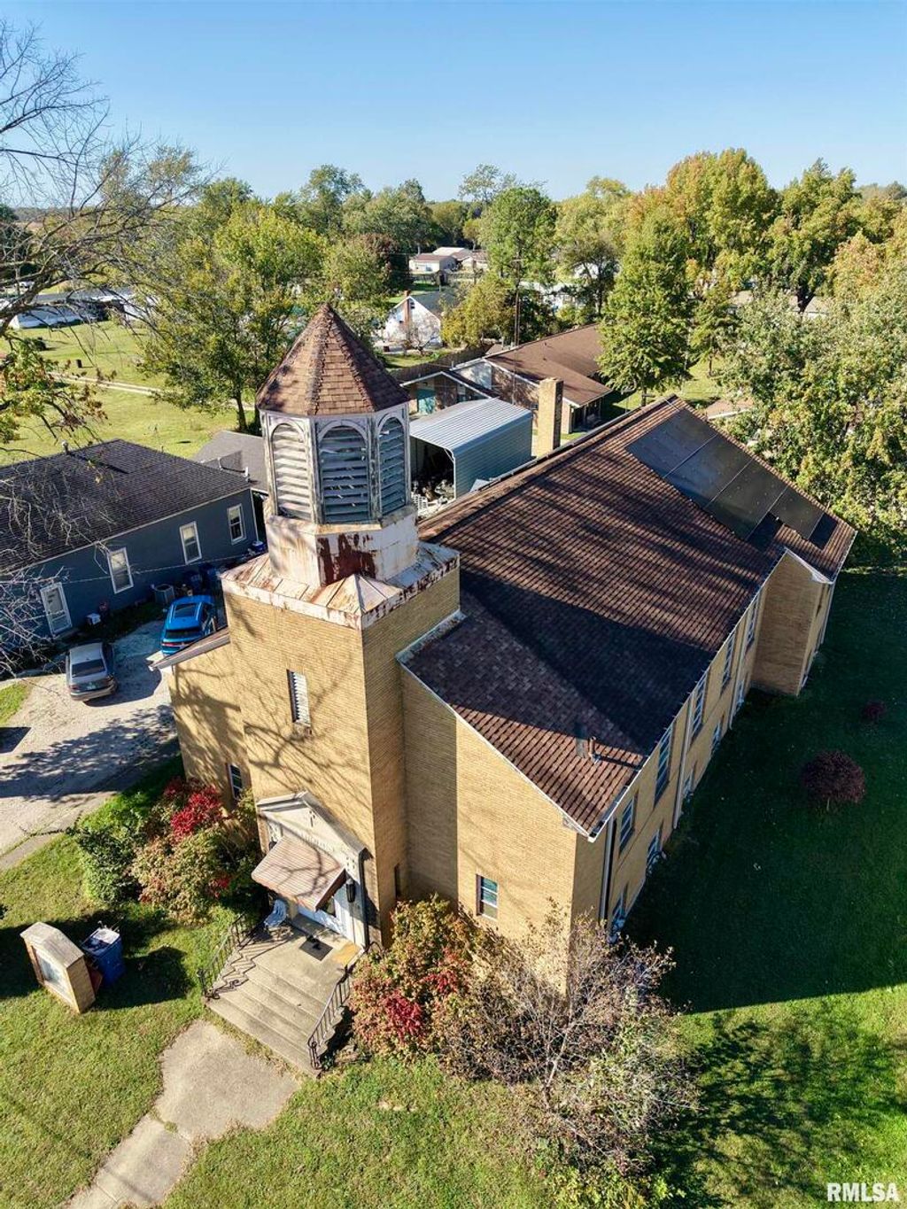 Former church transformed into a one-of-a-kind residence! This remarkable brick building offers soaring ceilings, original architectural character, and a full lower level that mirrors the upper floor in size. The spacious main level features an open concept living area beneath the vaulted chapel ceiling. With efficient solar panels that kept last month's electric bill around $20, this home combines historic charm with modern sustainability. You cant build these for a fraction of what you can buy this gem at today. With great yard space on the back and tons of potential, this property is ideal for those seeking something truly different-whether as a family home, studio, or event space. Schedule your private showing today and experience this extraordinary find in Noble, Illinois!
