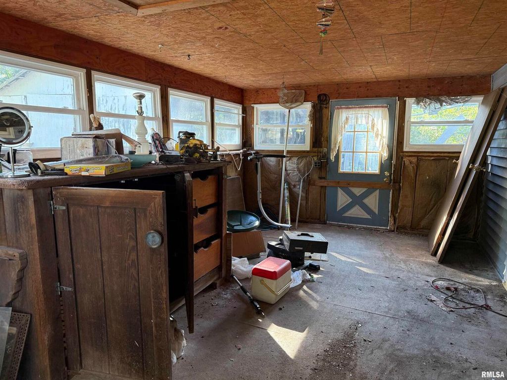 This is a Fixer Upper! 2 Bedroom, 1 Bath, Back Porch on 1/2 Acre w Pole Barn and Storage Building on a corner lot. There is a screened in room detached from the home.