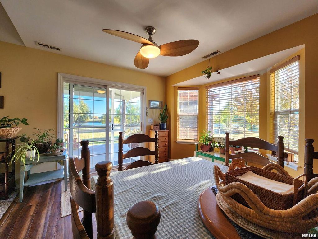 This modern 3 bed/2 bath home, tucked away in the lovely Hanover Place subdivision, offers everything you're looking for. New roof last year, new appliances, new flooring, newly remodeled primary bathroom (custom shower glass ordered), updated secondary bathroom, 36 in doors and zero step entry throughout, and landscaping filled with fruit trees and perennials. The covered back porch, overlooking Lake Hanover and the willow trees growing along its edge, includes a screened gazebo. The paint has even been refreshed, making this property truly move in ready! Don't miss your opportunity to make this beautiful property your forever home.