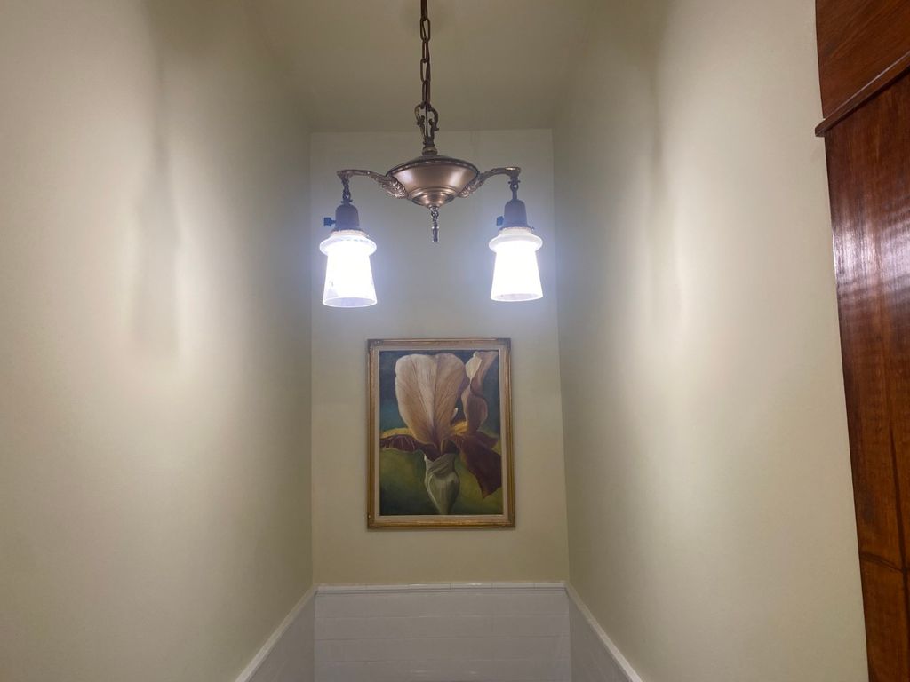 This home has been meticulously updated, offering modern convenience without sacrificing it's timeless charm. The many updates add to the appeal of the home-New roof on home and garage, floors refinished, new deck on back of home, powder room-new tile floor, wall tile, dry wall, sink, vanity and toilet, new lighting, kitchen cabinets painted with new hardware, new ceramic tile floor, furnace inducer motor replace, AC capacitor replaced all in 2024. Main sewer serviced in 2025. As you enter the lovely foyer through the original oval lite door with a transom window above, you will be in awe of the beautiful hardwood flooring that has recently been refinished and the grand staircase leading to the second level. In keeping with the original character the dining area is separate from the kitchen to create a more formal and quiet space. You can enter the updated kitchen from dining or living room. It features nicely painted cabinetry, all stainless steel appliances and textured ceiling tiles giving an aesthetic interest and goes great with the age of the home. Upstairs you will find 3 bedrooms with newly finished hardwood and a full remodeled bathroom. Outside is a 2 car garage that is currently partitioned off allowing only 1 car capacity. The new deck installed is a great place to enjoy your morning coffee. Because of the location of the home you can enjoy the 4th of July fireworks show from your front porch. Make your appointment quickly