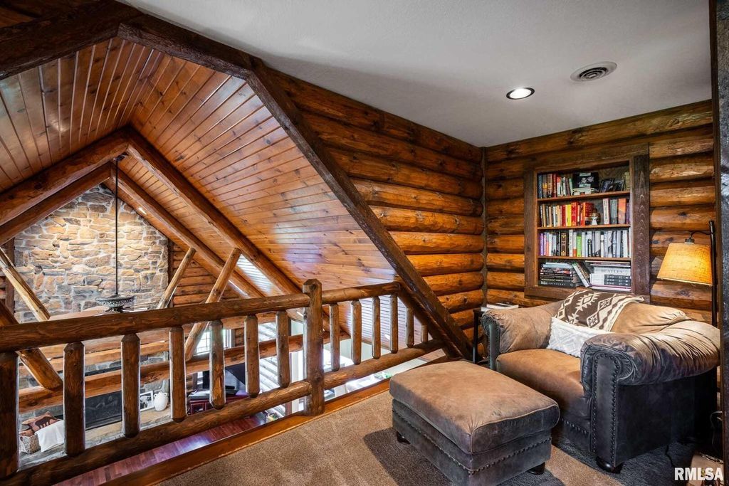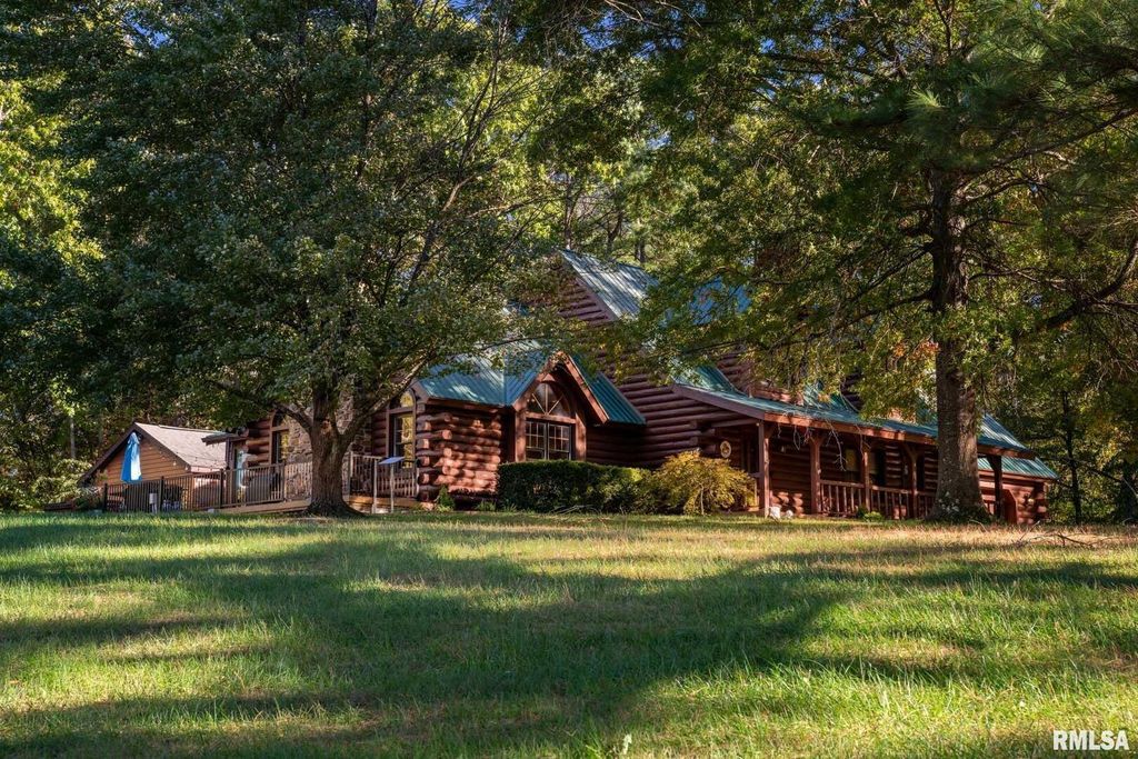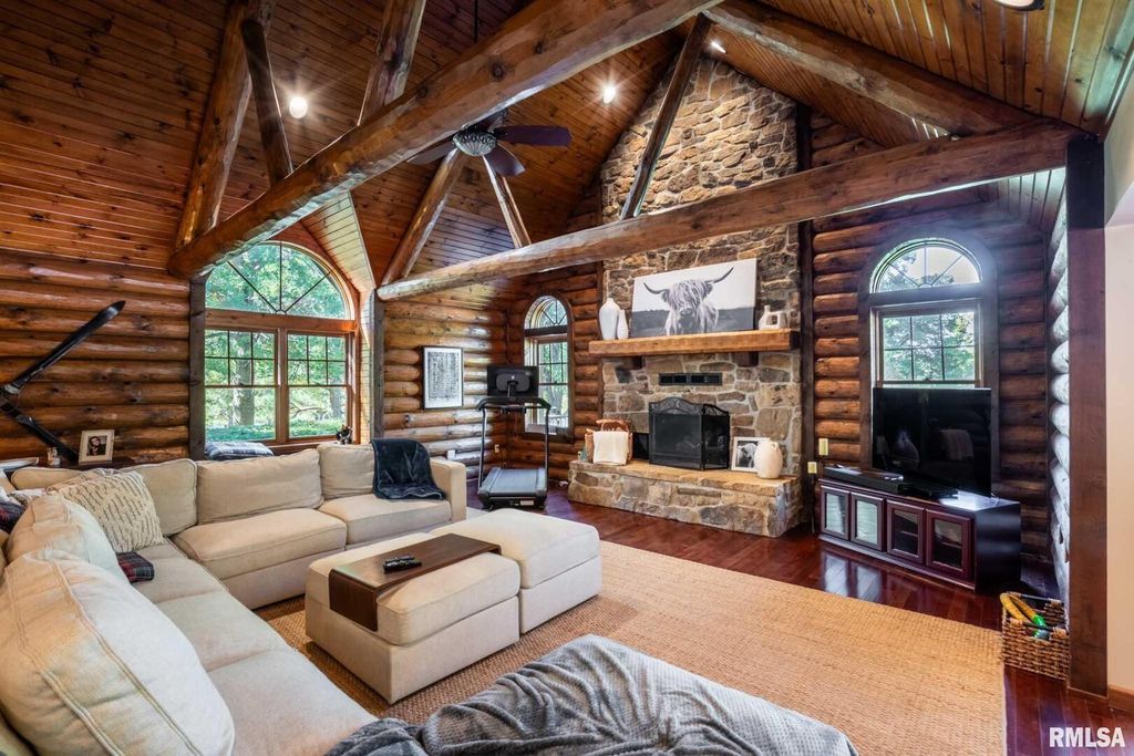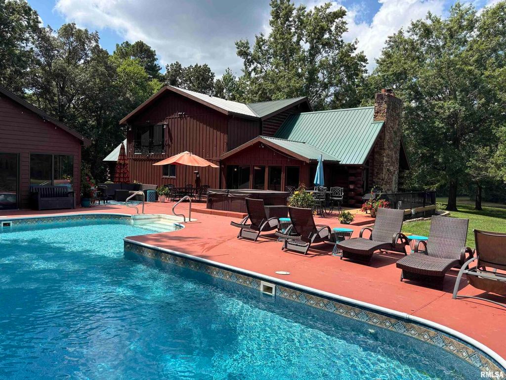Rustic Luxury Log Cabin Retreat on 17 Acres Welcome to your private escape - a stunning 3-bedroom, 3.5-bath log home spanning over 4,500 sq. ft. and nestled in a one-of-a-kind wooded setting. This property perfectly blends rustic charm with modern comfort, offering the peace of country living just minutes from town. Step inside the grand entrance and be greeted by soaring cathedral ceilings, exposed wood beams, and a majestic stone fireplace that anchors the great room. Expansive windows fill the home with natural light and frame breathtaking views of the surrounding landscape. The chef's dream kitchen features custom cabinetry, a matching pantry, and plenty of space for entertaining. The primary suite is a true retreat, boasting a luxurious walk-in shower and an impressive walk-in closet. The finished basement provides additional living space ideal for a game room, family area, or music studio, as the current owners have designed. There's no shortage of storage, with ample closets, utility areas, and even a pole barn outside for additional space. Outdoors, enjoy two stocked ponds and an in-ground pool surrounded by cooling concrete. The pool house offers heat and air, a kitchenette, living area, and full bath - perfect for guests or entertaining. Additional highlights include a geothermal heating and cooling system with dual tanks for energy efficiency, and a roof heating system to prevent ice buildup during the winter months. These homeowners have thought of everything!