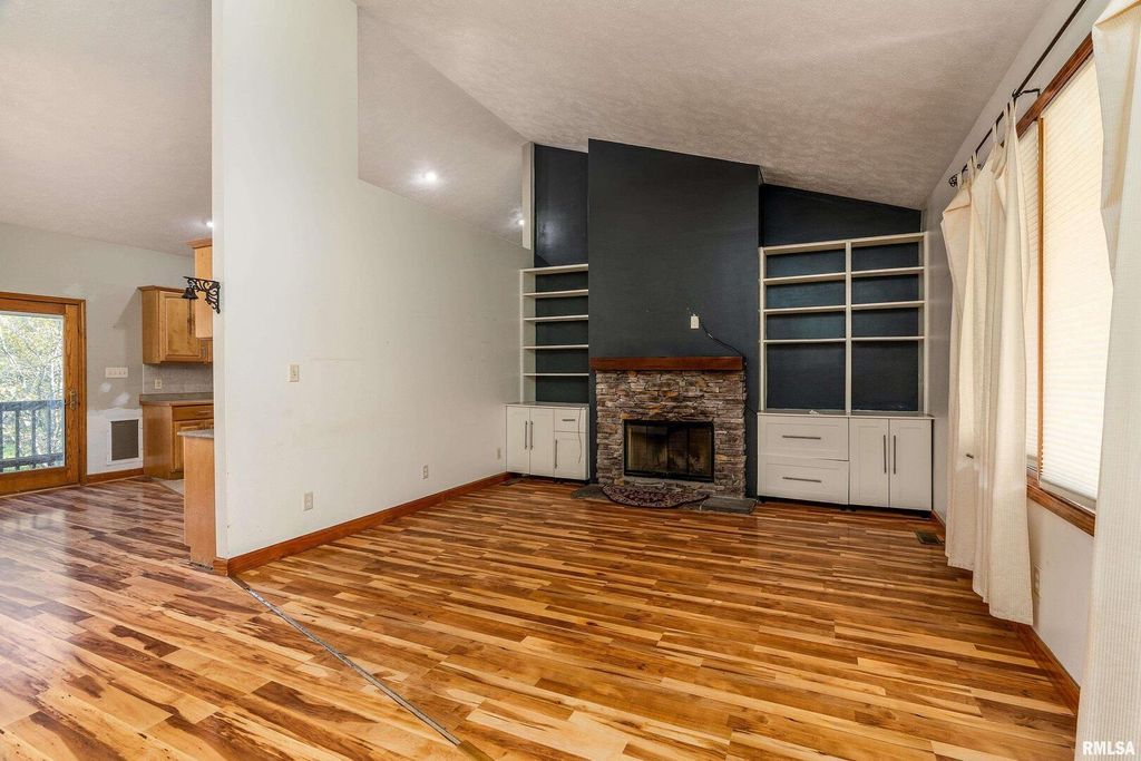 This home offers comfortable living across three divided lots for almost 8 acres. Inside, you'll find a bright, open layout with plenty of space to relax or entertain. The main level features a bright living room with a fireplace, an open layout connecting the kitchen and dining area, and balcony access for easy indoor-outdoor living. There are two bedrooms on the main floor, including a primary suite with a walk-in closet and full bath. The finished basement expands your living space with a large family room, three additional bedrooms, a full bath, and a walk-out to the scenic backyard. Outside, enjoy the gazebo and wide-open views across the property's 8 acres. All these while staying close to schools, shops, and everything Carbondale has to offer.
