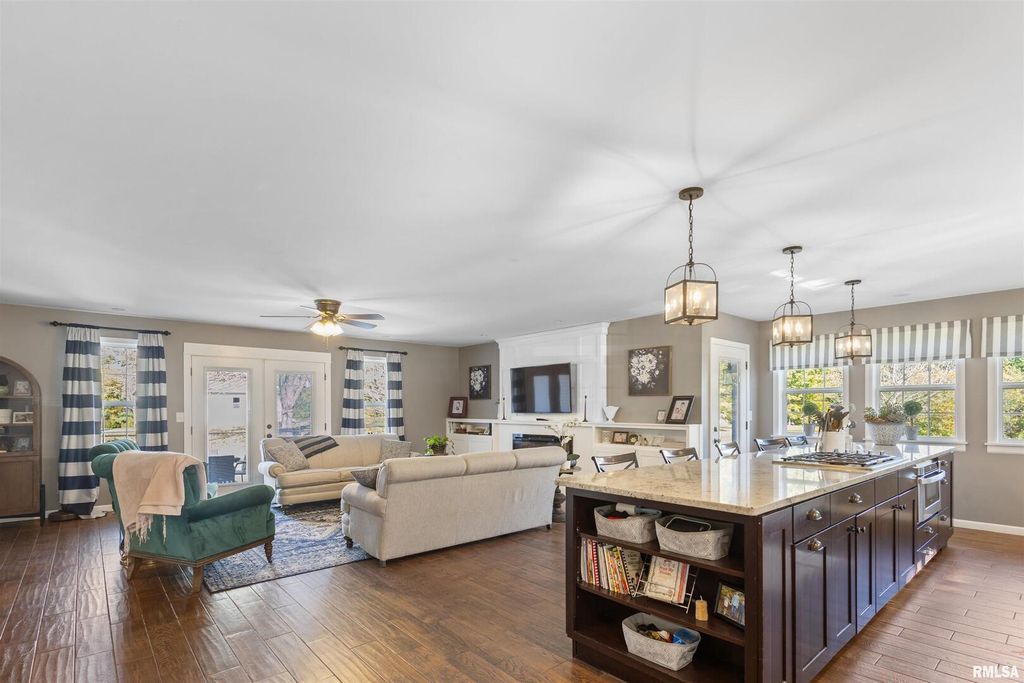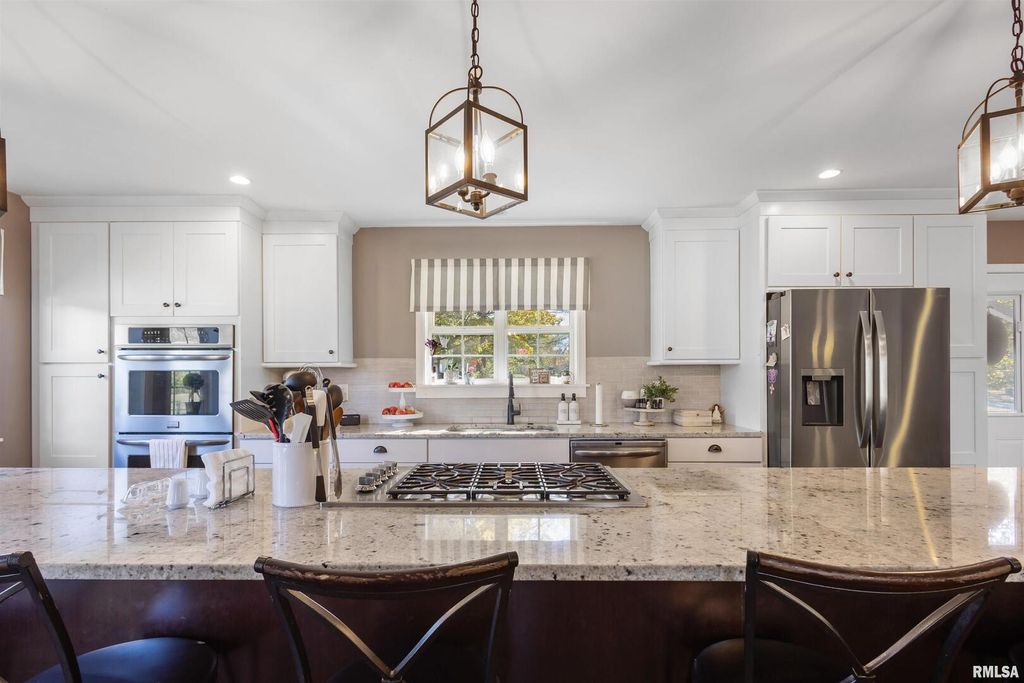 Luxury 5-bedroom, 4000+ square feet retreat! An executive lifestyle awaits in this very rare 5-bedroom, 3-bath residence perfectly situated on 1.89 acres in Jonesboro near the park. There are 2 beautifully fresh asphalt drives to enter this property. A chef's dream kitchen, featuring stunning solid-surface countertops, a dedicated pantry, and more than enough room for family and friends to participate in Christmas cookie baking, is made complete with an attached covered porch for outdoor cooking. Kitchen, living space, and dining room are open-concept. From the dining room there is access to the second-story balcony for enjoying nice conversation and fresh air after a meal. Outside the living room is a 24x46 fenced-in patio surrounding the inground pool with a newer liner and pump. The oversized master suite, located on the main level, featuring an 11.2x11.4 walk-in closet and a 14x10 bath area, is a retreat in itself. There are 2 additional bedrooms with a full bath between, a dedicated office space, and a laundry room located on the main level. Downstairs hosts a beautiful 2-story foyer, an informal family room, 2 additional bedrooms, a 1/2 bath, and lots of storage. There is a fenced-in raised garden to raise flowers and vegetables. In addition to all of this, there is newly-installed solar on this home to help with rising utility costs. You really must see this home to appreciate the spaciousness and the quality of the high-end finishes installed.