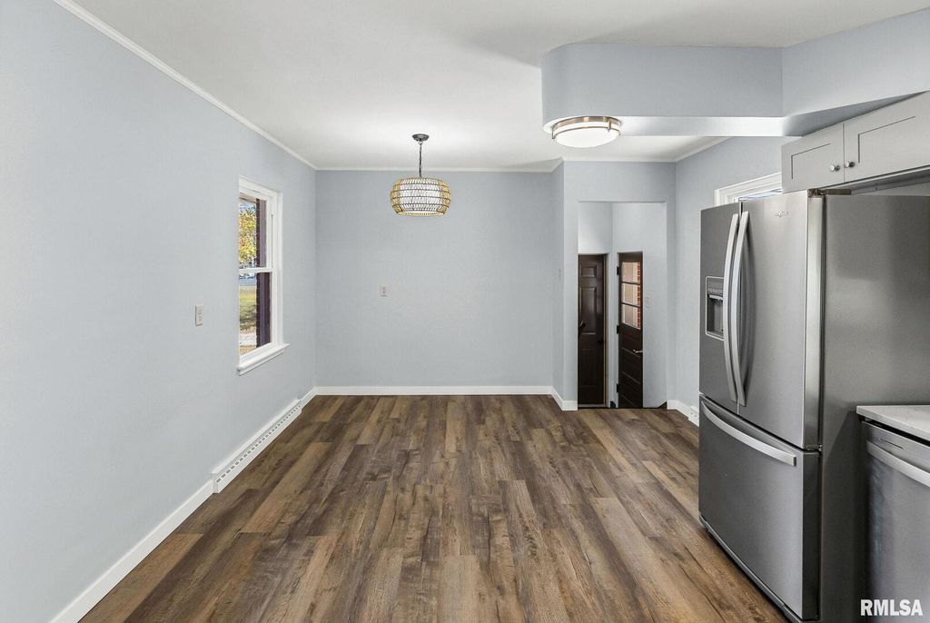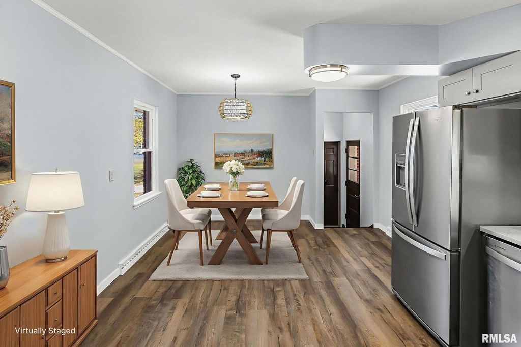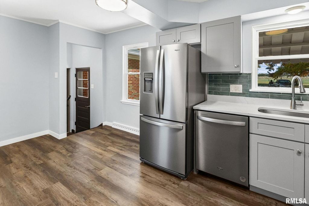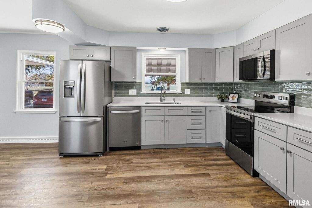Welcome to this stunningly remodeled house that perfectly blends modern elegance with country living-all on a generous 1.5-acre lot right on the edge of the city. This captivating 2-bedroom, 1-bathroom home is the ideal retreat for those seeking comfort, style, and the opportunity to customize their space. Step inside and be greeted by a brand-new kitchen that will delight any home chef. Featuring stainless steel appliances including a refrigerator, dishwasher, microwave, and a versatile oven that can be gas or electric, meal prep has never been more enjoyable. The quartz countertops and custom cabinetry add a touch of sophistication, while the luxury laminate flooring flows seamlessly throughout the home. The remodel extends to a gorgeous new bathroom and custom shelving that offer both functionality and flair. With all-new windows and a roof that is less than 15 years old, you can enjoy peace of mind knowing that your investment is built to last. The full unfinished basement provides a canvas for your imagination, For added convenience, a new sump pump has been installed, ensuring your basement remains dry and functional. The attached one-car garage offers convenient parking, and a large garage/shed with brand new siding provides ample storage for your outdoor gear, tools, and hobbies.