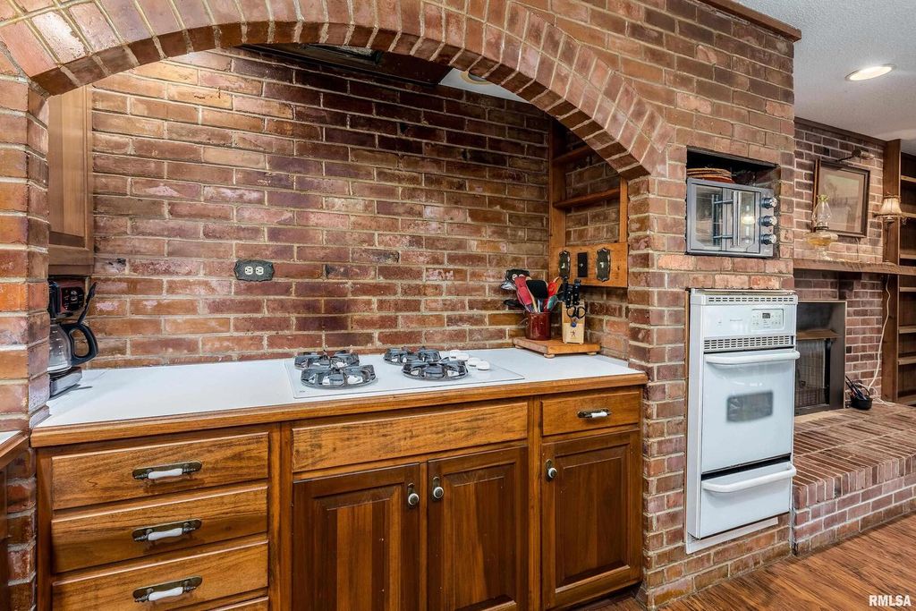 Beautiful Country Home on 4+ Acres - Lovingly Maintained by the Original Owner This stunning brick-and-wood home offers peaceful country living with an abundance of charm, character, & space. The main level features a gorgeous kitchen highlighted by a large brick wall with arched exhaust, gas range, & built-in oven. A spacious island includes a convenient desk area, & the open layout flows seamlessly into the family room, complete with a large brick fireplace with gas insert & built-in shelving. The additional dining area provides wonderful natural light thanks to its expansive windows. New luxury vinyl plank flooring adds modern comfort, & beneath it lies the original, beautiful brick floor. The upper level includes a living room, sitting room with patio doors leading to the upper deck (with steps to the lower patio), & a large bathroom featuring a claw-foot tub & separate vanity area. Two bedrooms are located upstairs, one with built-in shelves. The basement offers a spacious rec room with a gas fireplace. The basement bedroom includes a clever shelving unit that opens to a closet area connecting to the rec room. A large maintenance/laundry room provides an exterior entrance for convenience. Step outdoors to enjoy the beautiful backyard & multiple outbuildings, including a detached garage & pole barn. Recent updates roof & HVAC. This home has been cherished & well cared for. A true must see for anyone seeking country living with space, comfort, & character.