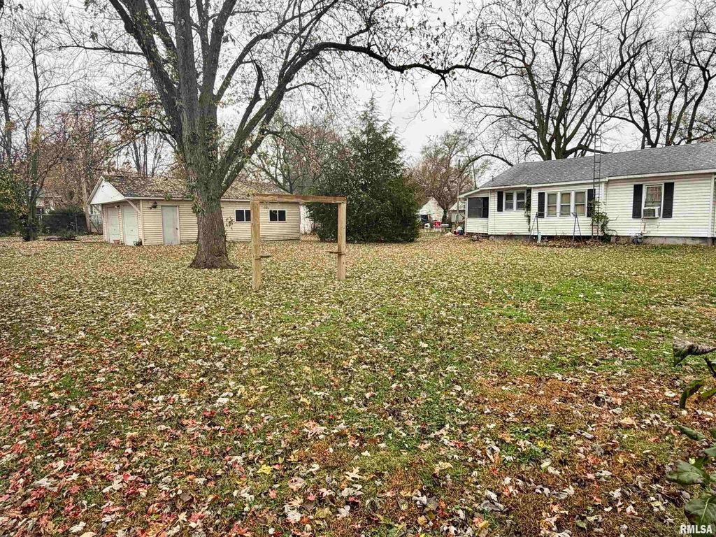 This 2 bedroom home has a large living room, dining room, kitchen and enclosed back porch. It is situated on 3 lots with a large detached 2 car garage. Garage has its own 200 amp power and meter. 1 side of the garage is insulated for workshop.