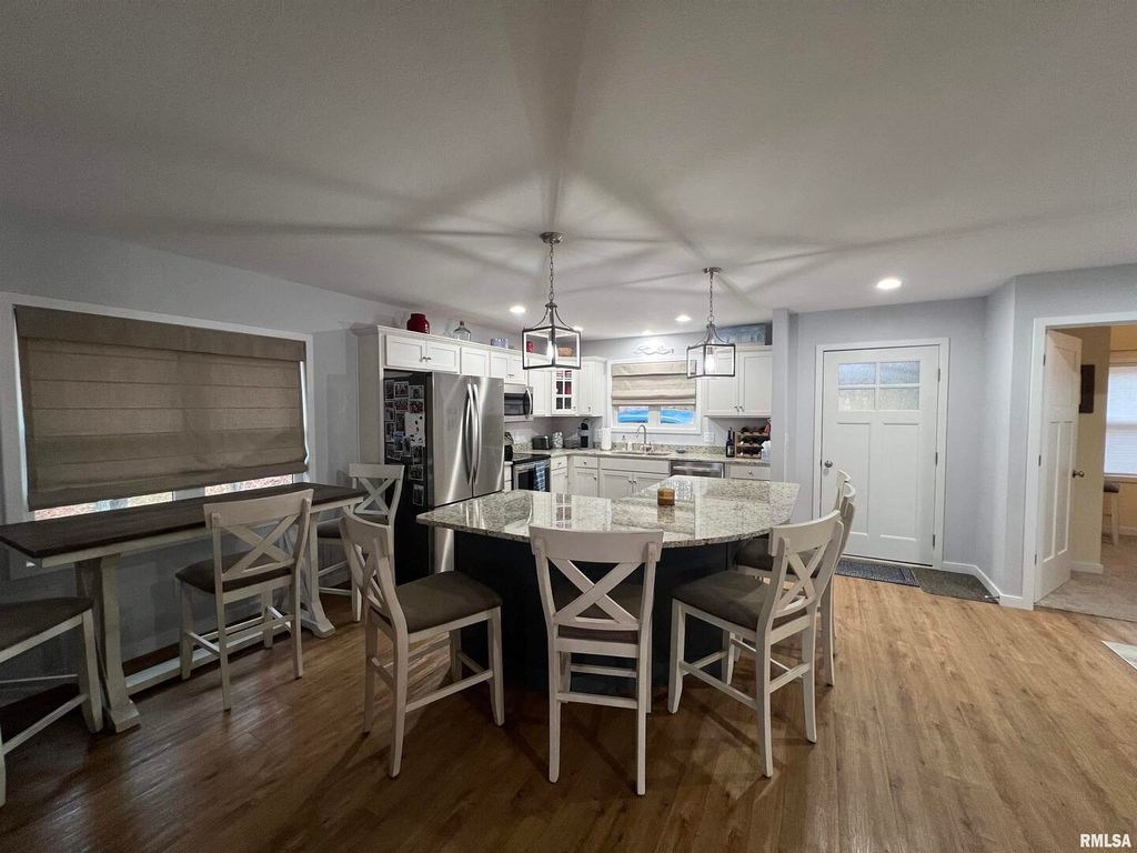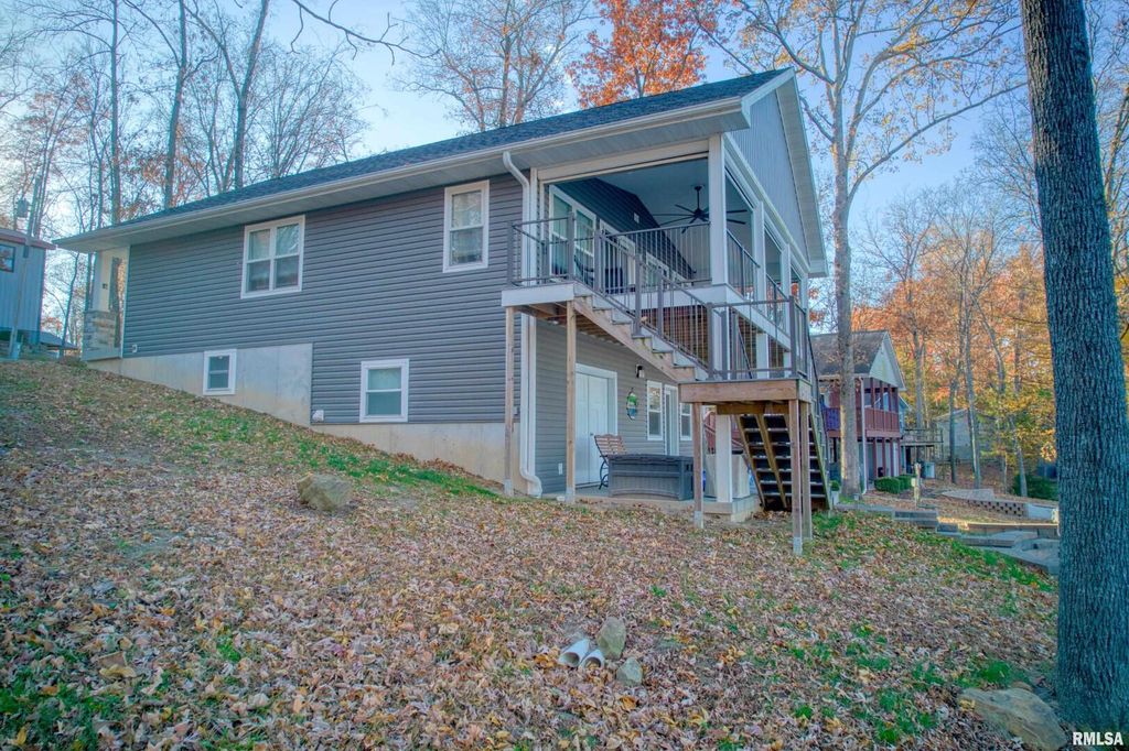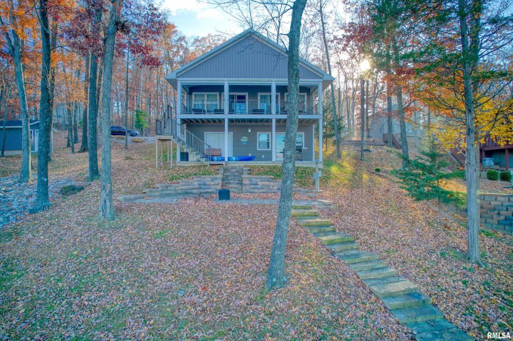 Stunning Lake of Egypt Waterfront Home, built in 2020. Welcome to this beautiful, nearly new waterfront home, perfectly situated on 1 1/2 lots for ample parking. On the main floor you will enjoy an open-floor plan, beautiful finishes in the bright open kitchen crossing through the living room with sliding glass doors leading out to the 3-sided patio enclosure with remote-controlled blinds to enjoy the breathtaking water views right off the ski area with deep water access, perfect for boating and water sports. There are 2 Bedrooms with the lakeside one having sliding glass doors leading out to the deck on the main floor with a full bathroom and a large pantry. Downstairs you will enjoy a family room, another bedroom, bathroom and laundry room with an unfinished area for storage The property features a 1-slip covered concrete boat dock with an electric hoist, plus a swim deck for relaxing by the water, as well as a 3-camera outside security system and has high speed Internet with unground fiber to house with Shawnee Communications. Bonus Opportunity: The seller also owns an additional lot featuring a large 28' x 35' garage with a 20' x 10' overhead door (for boat storage) built in 2022 just a few doors down. Seller will sell lot with garage for an additional $49,000. Seller will not be able to close until January 31, 2026