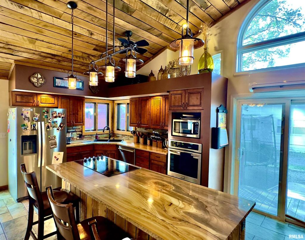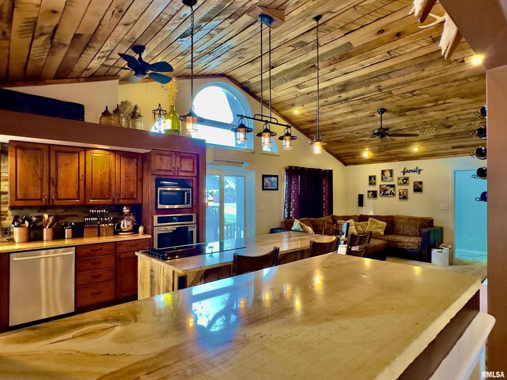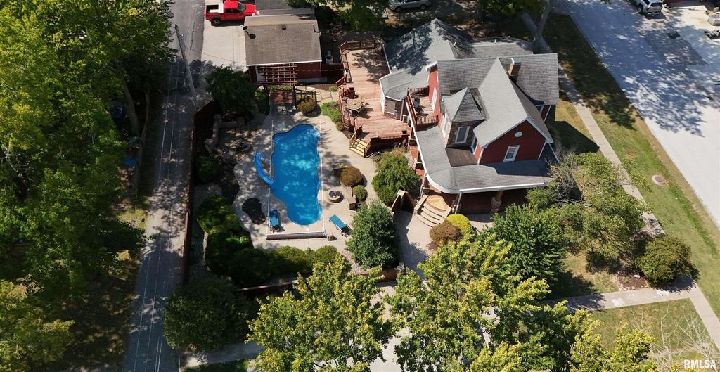 The story of this remarkable home begins at an apple orchard north of town, where it was originally built and later brought to Flora to stand as a true one-of-a-kind residence. Built in 1900, this stunning 2,700 sq. ft. Victorian blends timeless character with beautiful modern style, offering a living experience unlike any other. If you love the outdoors, this property will immediately feel like home. Enjoy a heated pool, a private patio with two built-in fire pits, and gorgeous landscaping throughout. The expansive wrap-around deck overlooks the play area to the west and the pool to the south, seamlessly flowing into the wrap-around porch that encircles the east and north sides of the home. Entertaining or relaxing outside has never been easier or more enjoyable. Inside, the custom kitchen and family room are extraordinary, featuring polished stone countertops, custom cabinetry, vaulted ceilings, and French doors from both the family room and dining room that open directly onto the deck. The main bathroom is a true showstopper-designed to feel like a high-end spa with elegant finishes and thoughtful details. Every room reflects quality craftsmanship, from the stone fireplace in the living room to the tray ceiling in the upstairs bedroom and the second-floor balcony overlooking the pool. Additional luxury continues with the finished two-car garage complete with central heat and air. Even during a storm, you'll stay comfortable and secure with your own home generator.