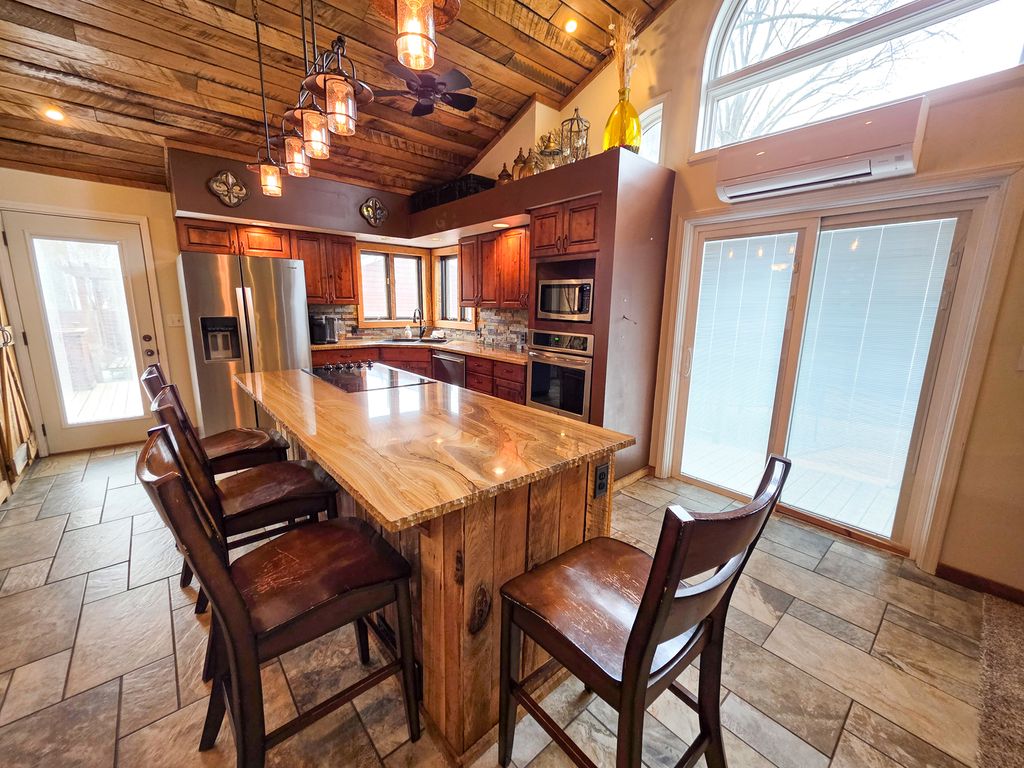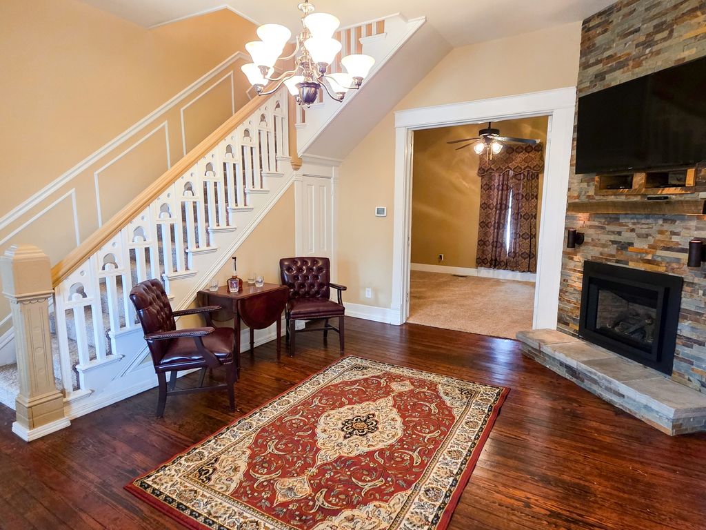 The story of this remarkable home begins at an apple orchard north of town, where it was originally built and later brought to Flora to stand as a true one-of-a-kind residence. Built in 1900, this stunning 2,700 sq. ft. Victorian blends timeless character with beautiful modern style, offering a living experience unlike any other. If you love the outdoors, this property will immediately feel like home. Enjoy a heated pool, a private patio with two built-in fire pits, and gorgeous landscaping throughout. The expansive wrap-around deck overlooks the play area to the west and the pool to the south, seamlessly flowing into the wrap-around porch that encircles the east and north sides of the home. Entertaining or relaxing outside has never been easier or more enjoyable. Inside, the custom kitchen and family room are extraordinary, featuring polished stone countertops, custom cabinetry, vaulted ceilings, and French doors from both the family room and dining room that open directly onto the deck. The main bathroom is a true showstopper-designed to feel like a high-end spa with elegant finishes and thoughtful details. Every room reflects quality craftsmanship, from the stone fireplace in the living room to the tray ceiling in the upstairs bedroom and the second-floor balcony overlooking the pool. Additional luxury continues with the finished two-car garage complete with heat and air. Even during a storm, you'll stay comfortable and secure with your own home generator.