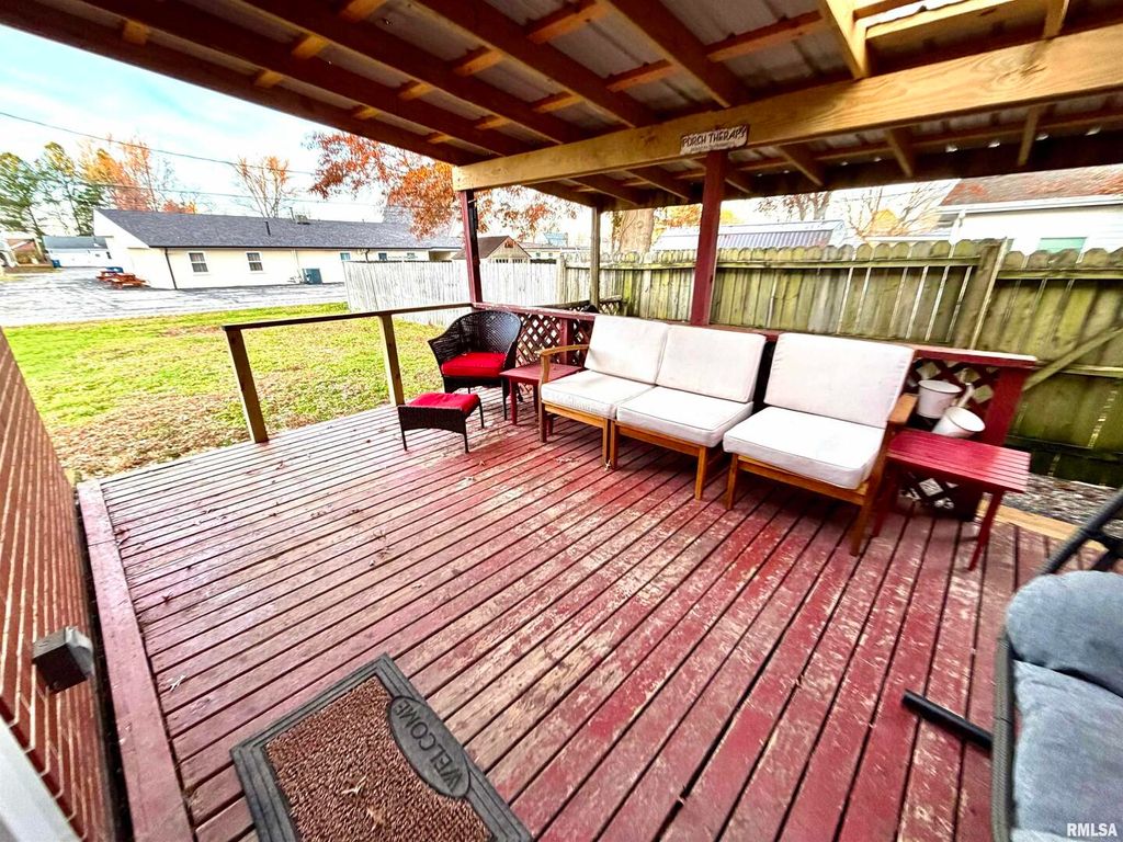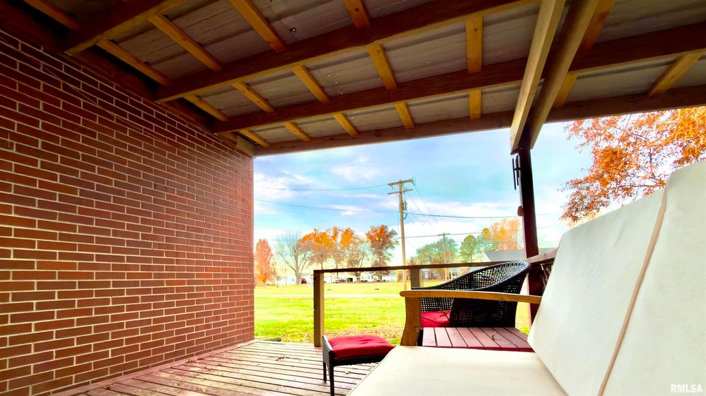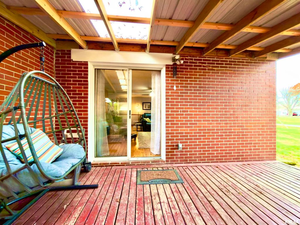 This beautifully updated brick home blends modern comfort with timeless character and is truly move-in ready. Tucked away on a quiet no-thru street, the property offers standout curb appeal, easy-to-maintain landscaping, and an oversized backyard perfect for anyone who loves outdoor living. Step inside and enjoy the 360 sq. ft. family room, complete with a classic brick fireplace, abundant natural light, and patio doors that open to a covered deck overlooking the backyard. Just off the family room, a step-down grilling area creates the ideal setup for summer cookouts and entertaining. The home features a spacious dining room perfect for gatherings, and a versatile 17x14 sunroom-a bright, inviting space that works beautifully as an office, plant room, reading retreat, or bonus living area. Major updates have already been handled for you: replacement windows, newer roof, 200-amp electric service, updated HVAC, fresh paint, and more. Both bedrooms are generous in size, with the primary easily accommodating a king bed. Convenient hall access leads to a stair-entry attic for additional storage. If you're a first-time buyer, downsizing, or simply looking for a comfortable, well-maintained home with great indoor and outdoor living spaces, this one is a must-see. Homes this charming don't last long-schedule your tour today!