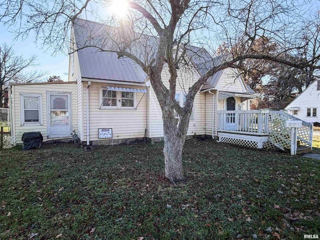 This cute 3-bedroom home is ready for your personal touches! Don't let the affordable price fool you-situated on a nice corner lot, this property has so much to offer. The rounded front door highlights the classic 1940s character, while the living room features original hardwood floors and an arched entryway into the informal dining room. Large windows in both rooms allow plenty of natural light to flow through the space. The galley kitchen makes cooking convenient, and the two main-floor bedrooms are a comfortable size. One bedroom includes a washer and dryer hookup for easy, main-level laundry. The upstairs bedroom is spacious and includes a bonus room perfect for storage or a small office. A large screened-in sunroom adds valuable living space for most of the year and leads directly to the covered patio-ready for springtime enjoyment. The detached 2-car garage provides covered parking and extra space for tools, lawn equipment, or hobbies. A partial basement offers even more storage options. With a metal-roofed garage, vinyl siding, central heat and air, and a great corner lot, this 3-bedroom home delivers tremendous value. Potential buyers are encouraged to ask about financing options and available grants they may qualify for.