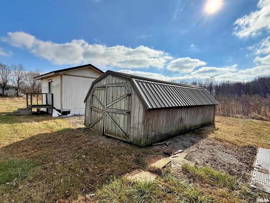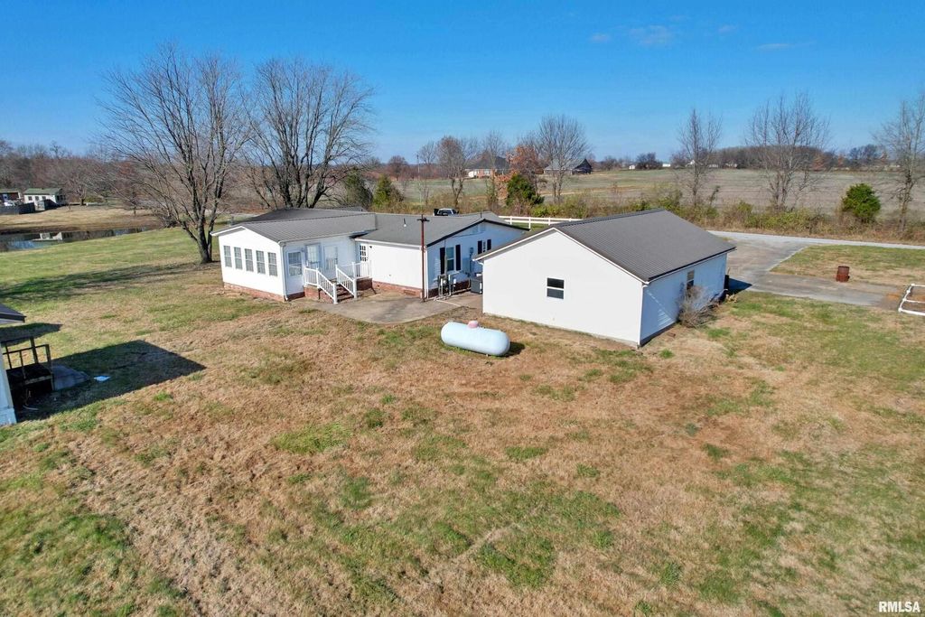 This doublewide home offers about 2,100 sq. ft. of living space including the addition on the back of the house and is situated on 7.29 acres, giving you plenty of room to spread out and enjoy the outdoors. The property includes a nice, stocked pond, perfect for fishing or relaxing, as well as a 34x24 detached garage with two overhead doors and lots of space for storage or a workshop. There are also two additional outbuildings for even more storage options. Inside, the home features newer windows in most rooms, a formal dining area plus an informal eating space, and an 18x10 finished partial basement that adds extra usable space. You'll also find plenty of closets throughout the home. It is all electric, with the added benefit of a whole-home generator powered by a propane tank for peace of mind. Both the home and garage have long-lasting metal roofs. The 18x23 covered front porch is a great spot to sit and enjoy the view of the property. The home does need some TLC, but it offers a lot of space, good features, and strong potential.
