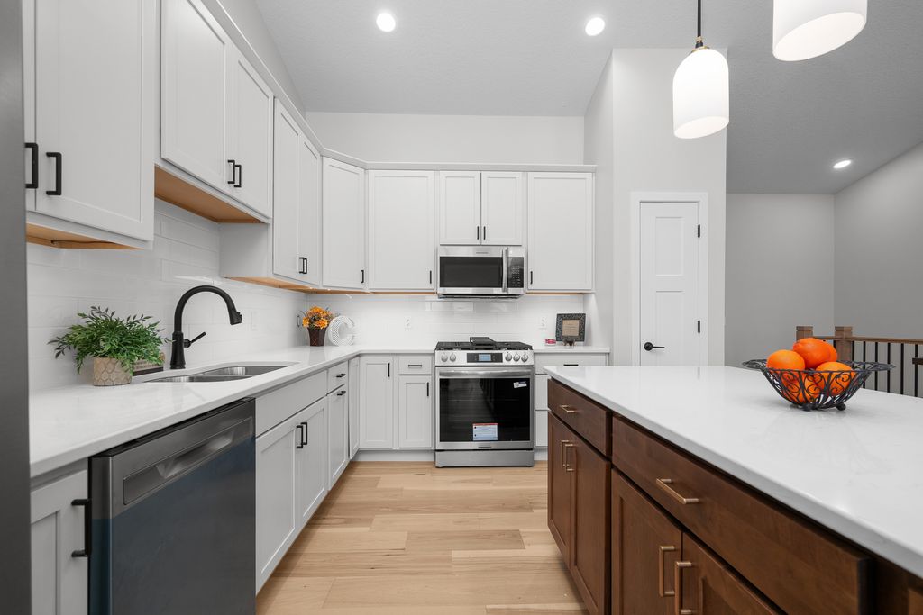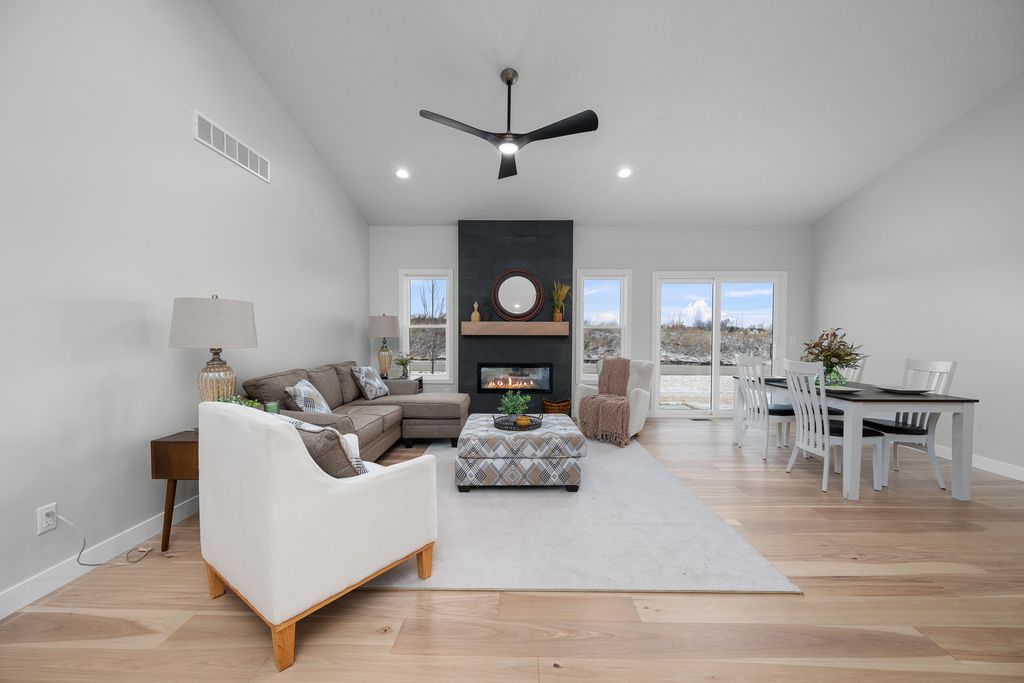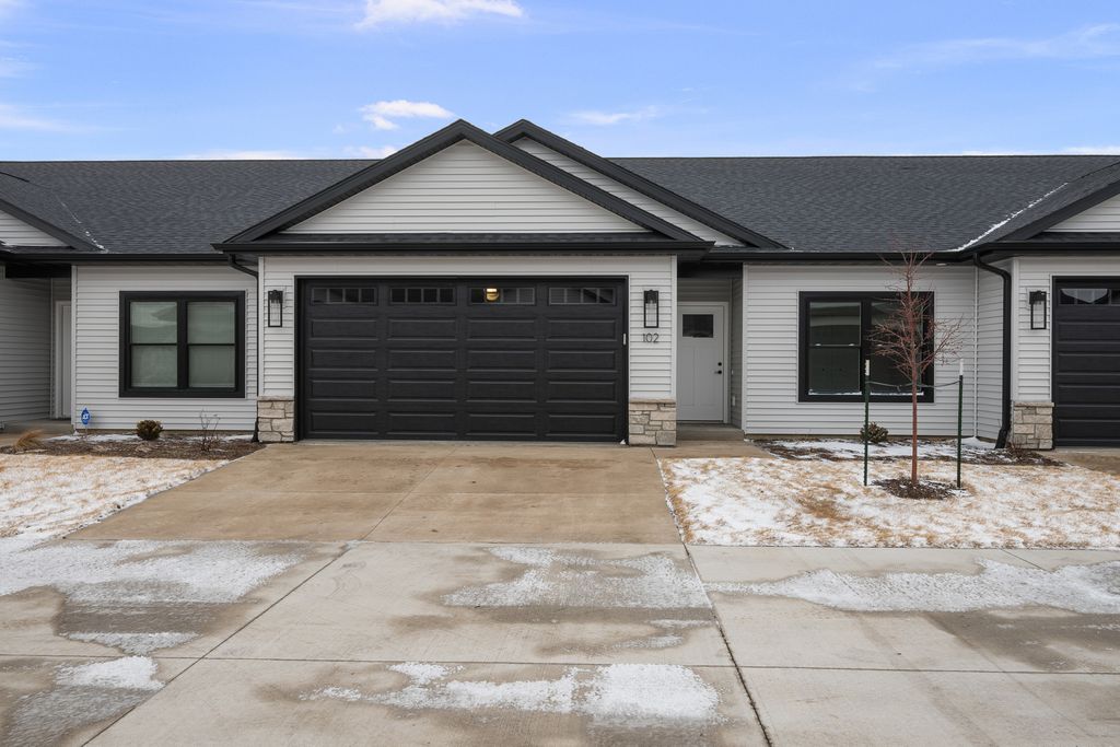 Now Staged! Welcome to the exquisite Redbud Circle Villas by Encore Homes LLC, nestled in the new Grunwald Grove subdivision. These charming attached villas boast two spacious bedrooms, including a primary suite with a walk-in closet next to the laundry room and an en-suite bath featuring a tiled shower and double sinks. The heart of each home is the island kitchen, adorned with hard surface countertops, modern appliances, and a convenient pantry. The hardwood floors seamlessly flow into the dining and living area, where a cozy fireplace invites relaxation, and sliding doors lead to a private patio. For those seeking extra space, the finishable basement offers an egress window, perfect for adding a third bedroom or creating a versatile living area. Enjoy the ease of low HOA fees that cover lawn care, snow removal, and access maintenance, allowing you more time to savor your beautiful surroundings. Discover the perfect blend of style, functionality, and community at Redbud Circle Villas-your ideal home awaits!