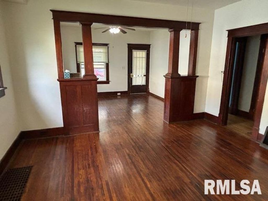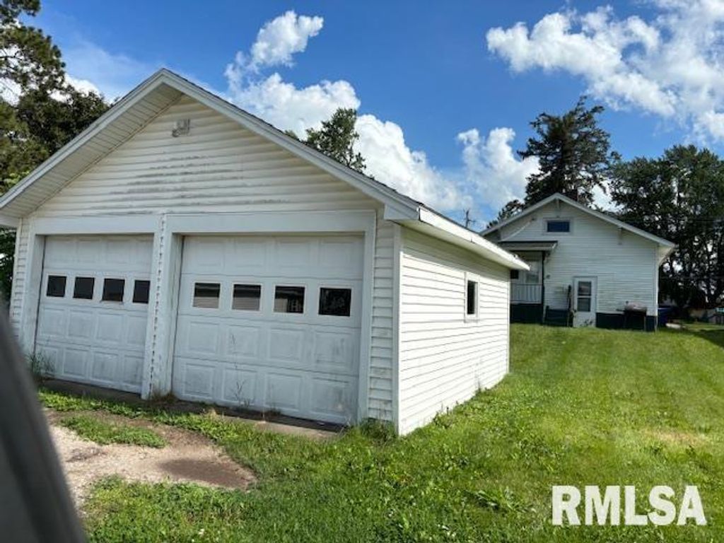 Quiet neighborhood great location for this 2-bedroom bungalow with vinyl siding and detached 2 car garage with alley access. Natural woodwork and hardwood floors throughout. Built-in cabinets in bath. Kitchen sink and countertop are 3 years old. Kitchen has a wall of cabinets. Nice enclosed screened front porch. Several replacement windows. Appliances stay but not warranted. Owner is in the process of moving.