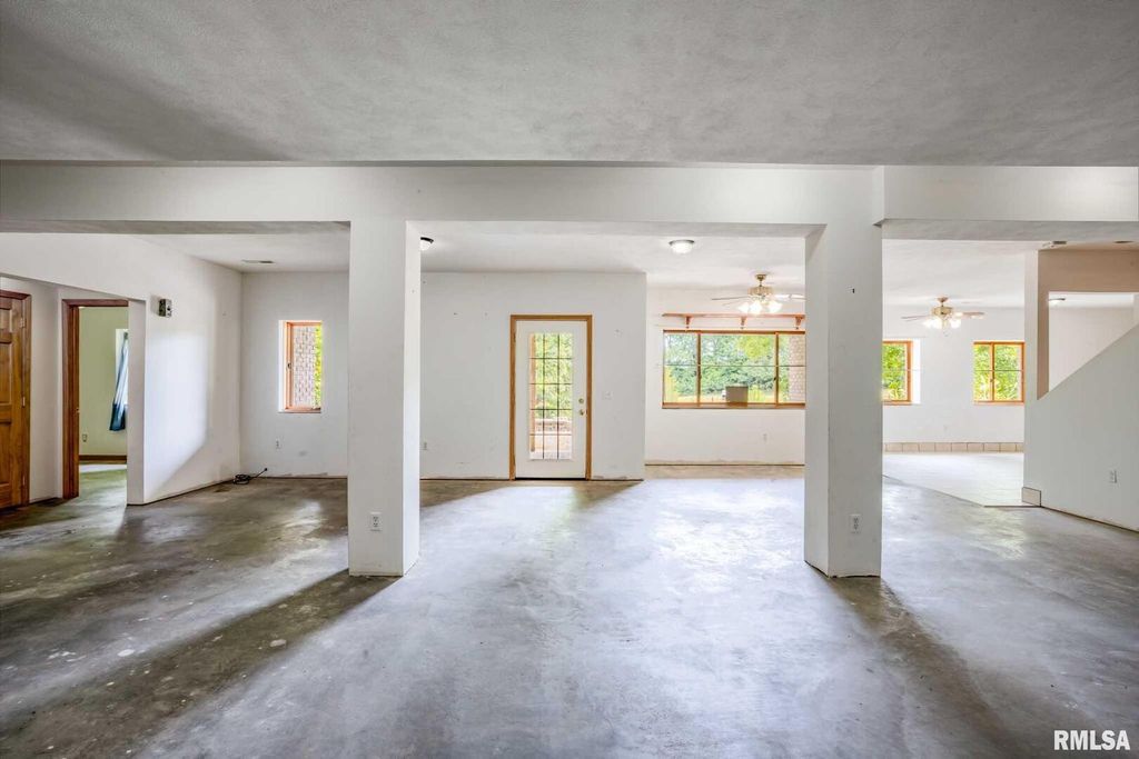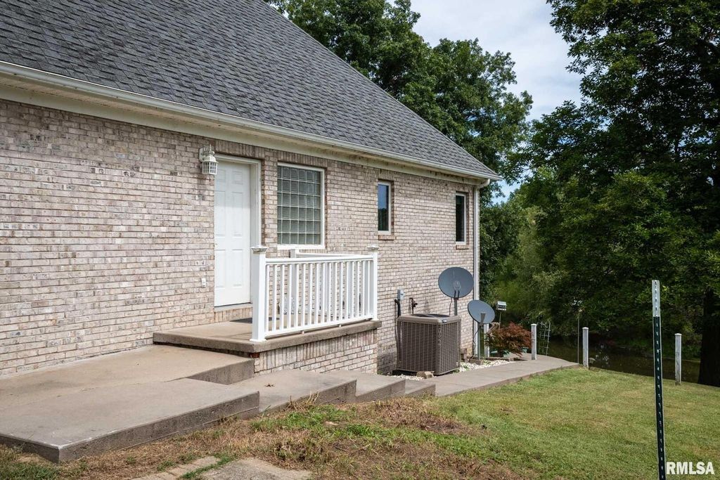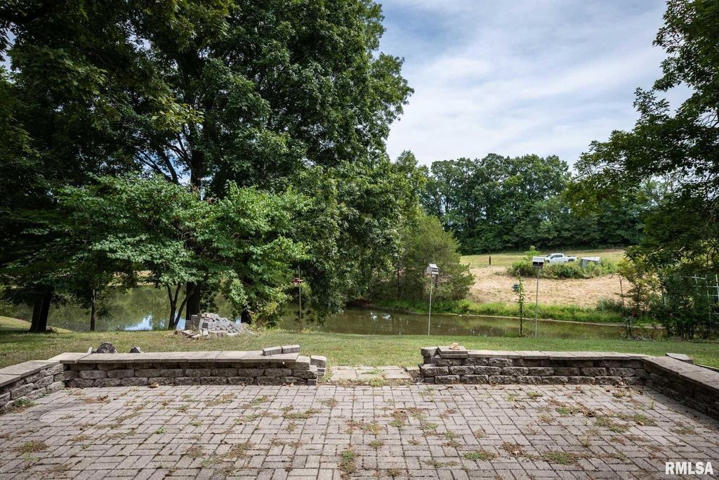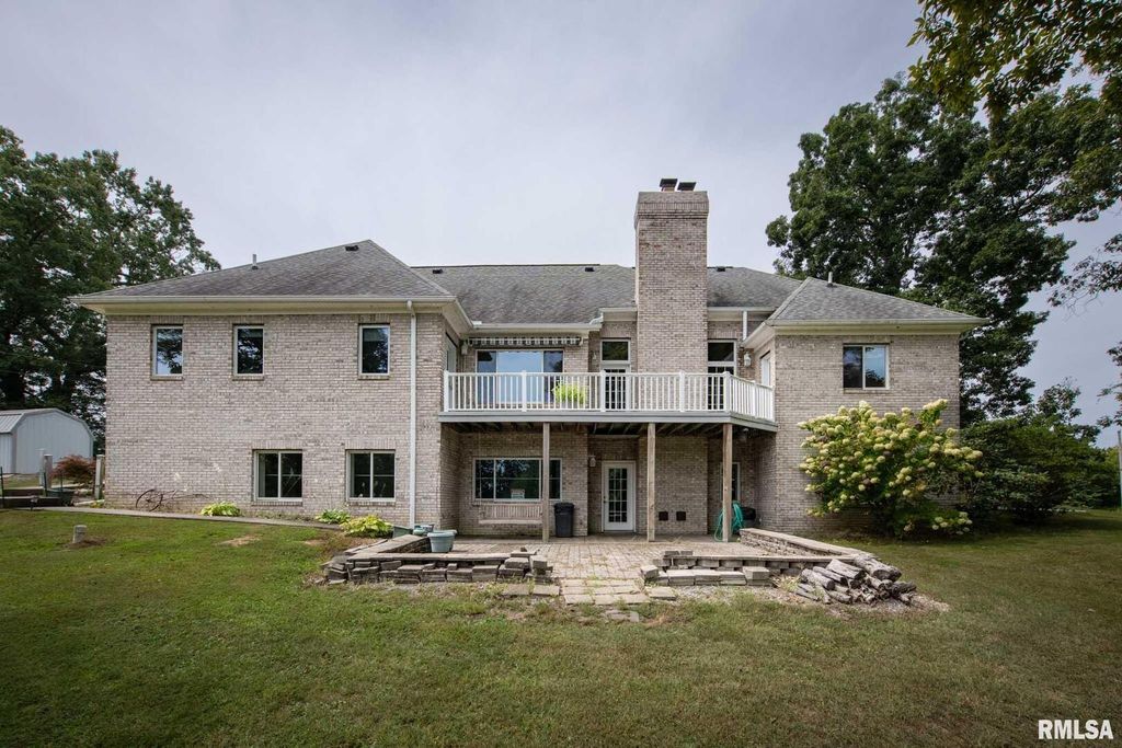 Peaceful country living on 30+ acres of rolling hills conveniently located less than 2 miles from I-57. The custom brick 5-bedroom, 5-bathroom home is characterized by quality craftsmanship, comfort and space. You will find plenty of natural light, oak hardwood floors, spacious living areas with vaulted ceilings, and a central fireplace with wood burning insert. Main level has a split bedroom plan with private primary suite, front room/office, eat-in kitchen, formal dining room, laundry/mudroom and upstairs bonus/rec room which could serve as additional large bedroom. Composite floor deck with 3 access doors and electric awning overlooks the serene landscape. The downstairs doubles the living space with a full, bright walkout basement -ideal for guests, extended family, and/or recreation space. Basement has finished kitchen area, 1 and 1/2 baths; all other basement areas besides storage room completely finished except for flooring. There are endless possibilities to personalize according to needs and style with a seller credit for flooring! Outdoors, mature landscaping with a private, stocked pond and abundant wildlife offers a tranquil retreat. A pole barn has separate electric service, multiple water hydrants, and a concrete bay making this property an excellent choice for livestock or hobbies. Recent upgrades include a newer HVAC system (2023) giving peace of mind and efficiency. Appliances included are refrigerator, range (2), dishwasher, washer and dryer.