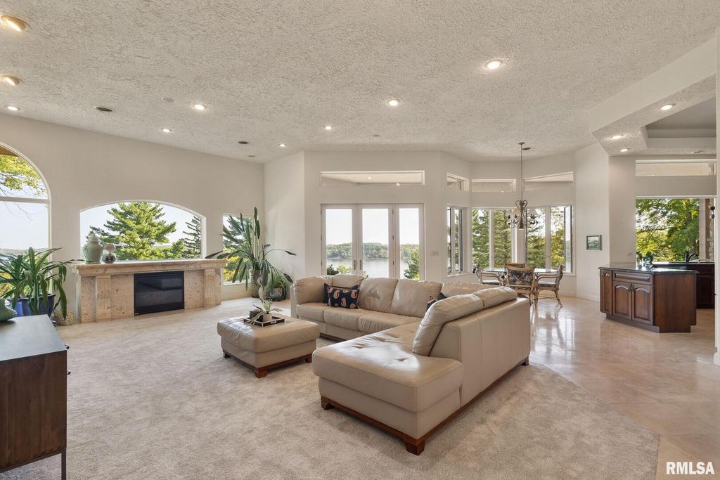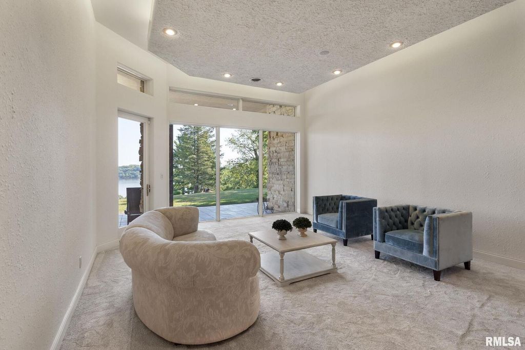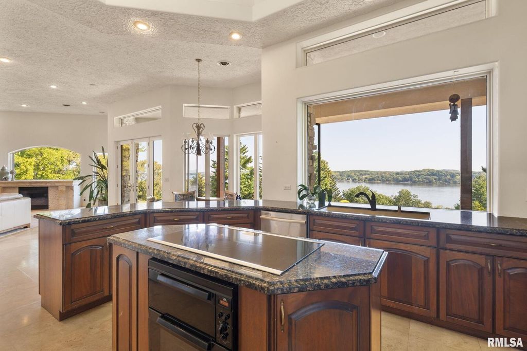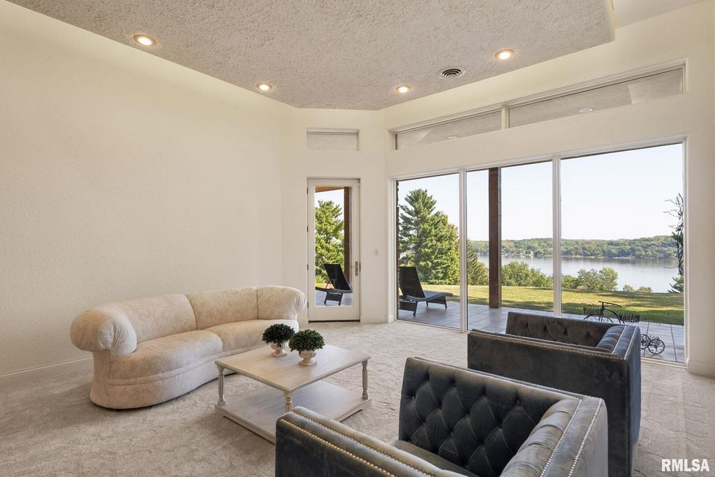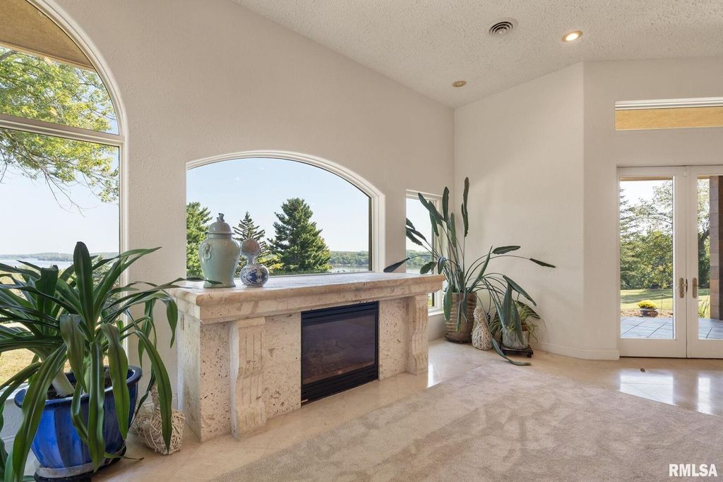 Experience a rare blend of Midwest charm and coastal luxury in this architectural showpiece overlooking the Mississippi River in LeClaire, Iowa. Designed to feel like a Florida retreat, this ranch-style home for sale in the Quad Cities offers panoramic river views from nearly every room. The solid stone exterior and grand drive lead to mahogany double doors that open to sweeping vistas of the river the moment you step inside. The primary suite is a private sanctuary, featuring floor-to-ceiling windows, a serene sitting area, and a spa-inspired bath that feels like a luxury resort. With heated floors throughout, new carpet on the main level, and a heated garage, this property delivers comfort in every season. Nestled on a 3.77-acre private lot (with potential to subdivide), it's the perfect setting to enjoy sunrises over the water, brilliant autumn colors, and peaceful snowfalls. Located just minutes from historic downtown LeClaire, with its boutique shops, dining, and riverfront charm, this Mississippi River estate offers unmatched privacy, elegance, and timeless design.