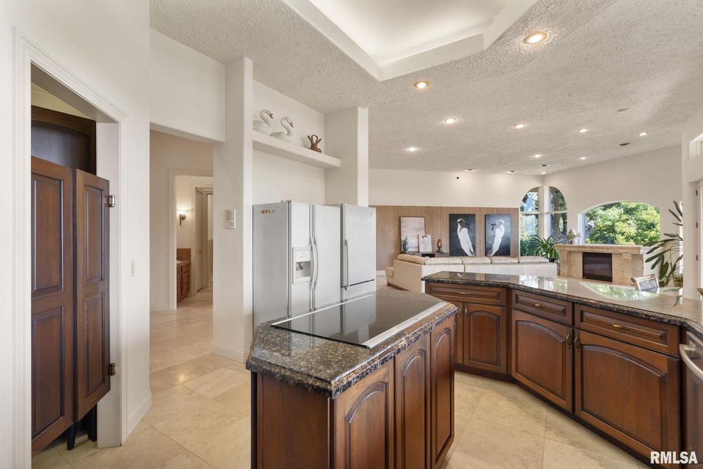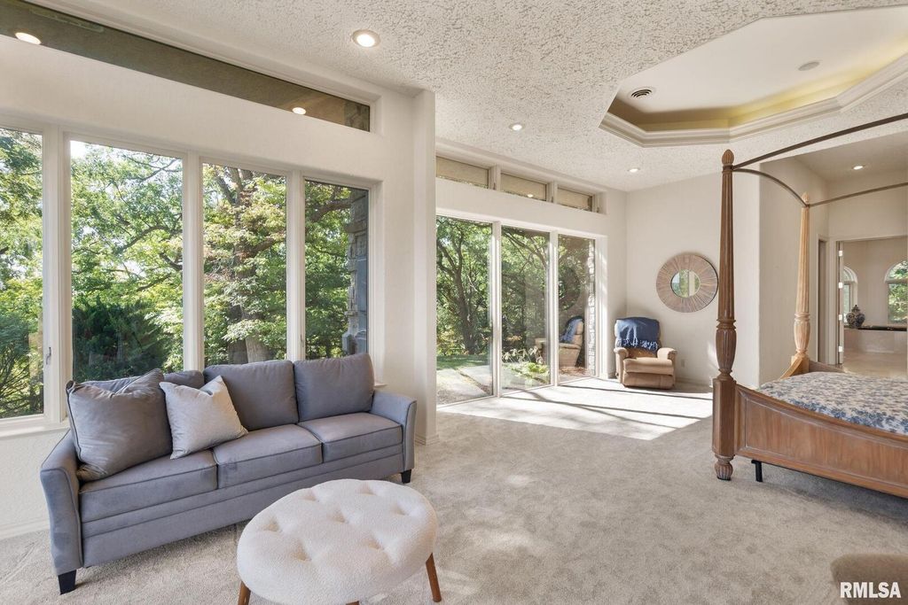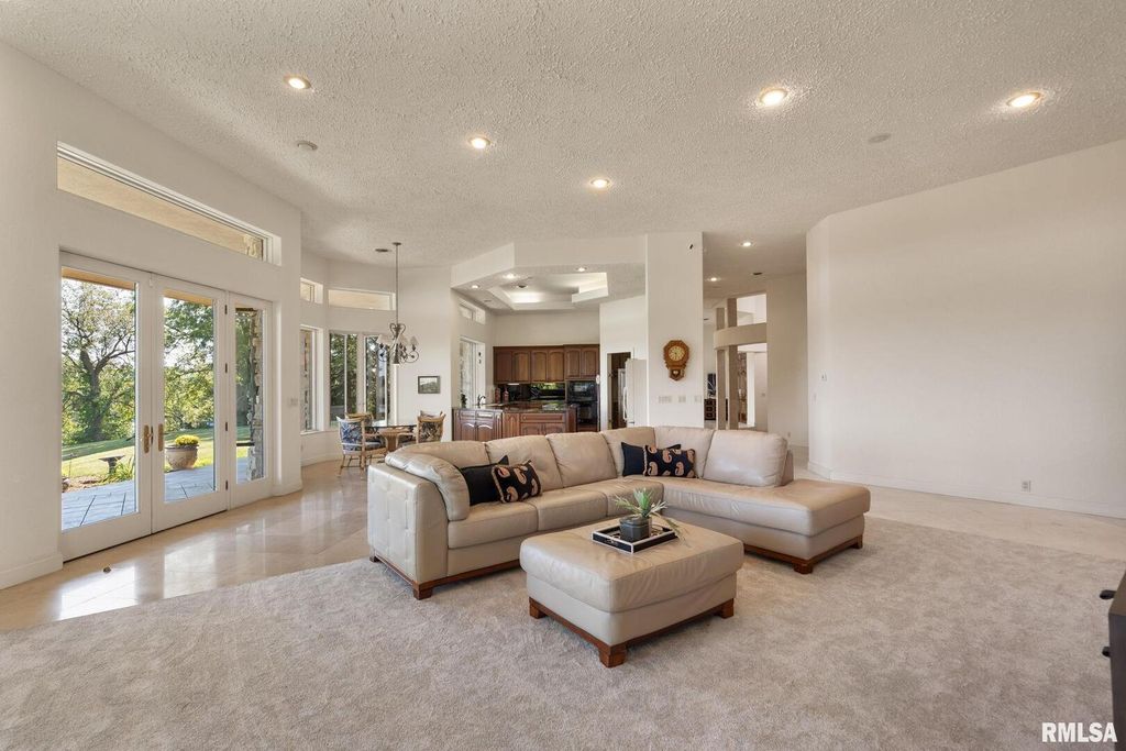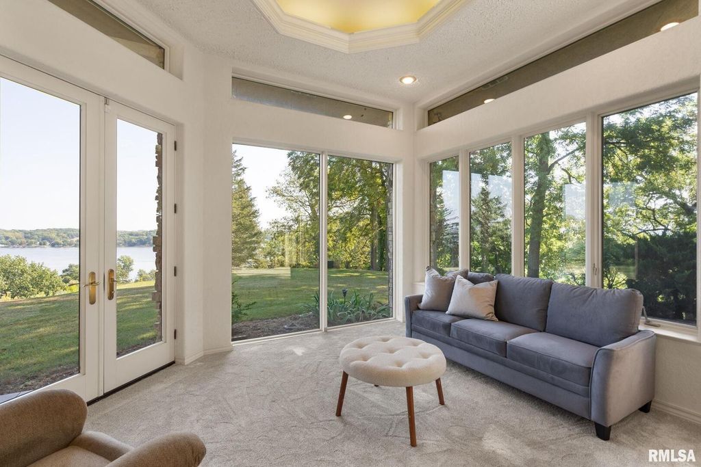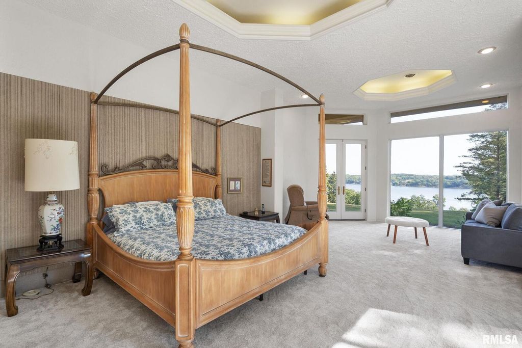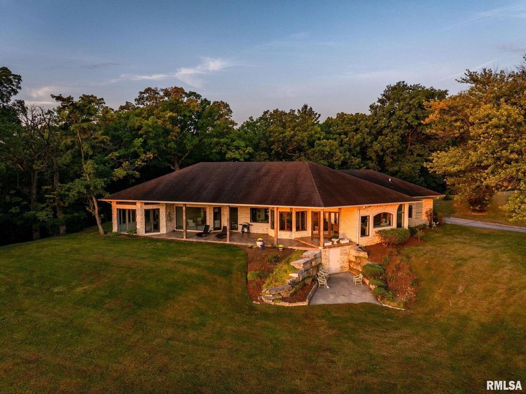 Experience a rare blend of Midwest charm and coastal luxury in this architectural showpiece overlooking the Mississippi River in LeClaire, Iowa. Designed to feel like a Florida retreat, this ranch-style home for sale in the Quad Cities offers panoramic river views from nearly every room. The solid stone exterior and grand drive lead to mahogany double doors that open to sweeping vistas of the river the moment you step inside. The primary suite is a private sanctuary, featuring floor-to-ceiling windows, a serene sitting area, and a spa-inspired bath that feels like a luxury resort. With heated floors throughout, new carpet on the main level, and a heated garage, this property delivers comfort in every season. Nestled on a 3.77-acre private lot (with potential to subdivide), it's the perfect setting to enjoy sunrises over the water, brilliant autumn colors, and peaceful snowfalls. Located just minutes from historic downtown LeClaire, with its boutique shops, dining, and riverfront charm, this Mississippi River estate offers unmatched privacy, elegance, and timeless design.