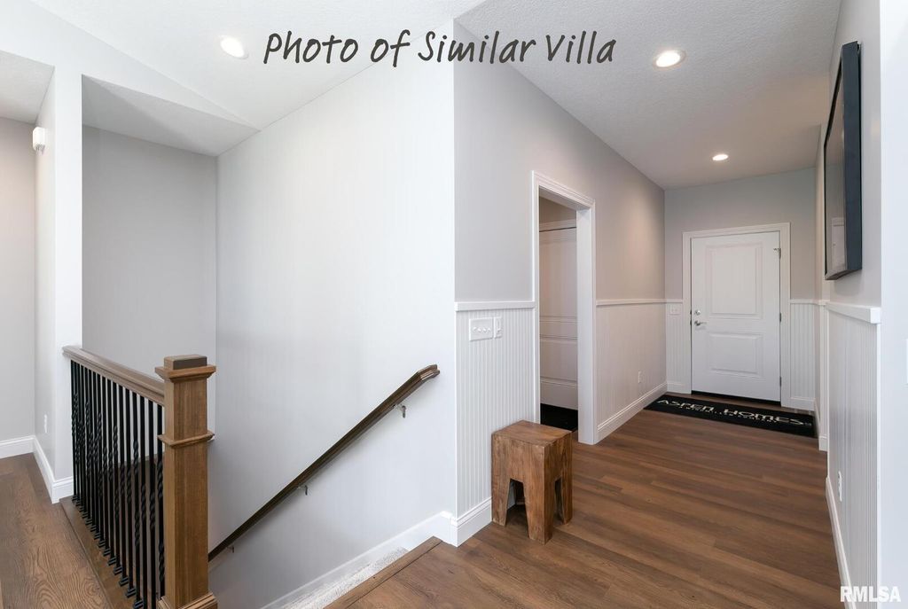 Johnson Farm Estates & Villas located in Pleasant Valley School District is now owned & managed by Windmiller Development. Aspen Homes brings their award-winning Villa floor plan to LeClaire Iowa. **SHOWINGS CAN BE REQUESTED TO VIEW NEARBY MODEL** This beautiful blend of tradition and modern finishes features 2 bedrooms, 2 full baths, 9' ceilings and luxury plank flooring. You'll love the open concept, desirable kitchen that includes quartz counter, stainless appliances. You'll appreciate the 20x24 Zero Entry 2-car garage leading to the spacious rear entry, bench with coat hangers. Standard Pella windows throughout. LeClaire has much to offer with nearby walking trails, parks, YMCA 2026 and convenient grocery store. The downtown area full of shopping, events, restaurants from fast food to fine dining and endless charm. HOA includes lawncare maintenance & snow removal. Pets allowed with some restrictions. This MIDDLE unit is a slab with additional 4-SEASON room. Projected completion APRIL 2026. Currently taking lot holds for Slab, Egress, Daylight and Walkout foundations.