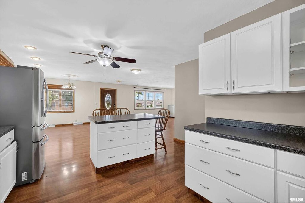 Welcome to this 4-bedroom, 2.5-bath Ranch located in the heart of Eldridge. This brick home offers nearly endless potential with its solid bones and timeless design. The main level features convenient laundry, a spacious living room, as well as a light-filled 3-season room leading to a stamped concrete patio and fenced backyard, perfect for relaxation or outdoor entertaining. The unfinished basement provides a workshop area, fireplace, half bath, giving you options for future living space while enjoying plenty of storage today. Bring your vision and creativity and this home is ready for its next chapter. A detached 2-car garage, established neighborhood, and quick access to Eldridge amenities make this a rare opportunity. Just a short walk, bike or scooter ride to several parks, downtown Eldridge & North Scott Schools. Home Warranty offered with accepted offer. Call today for your private showing!