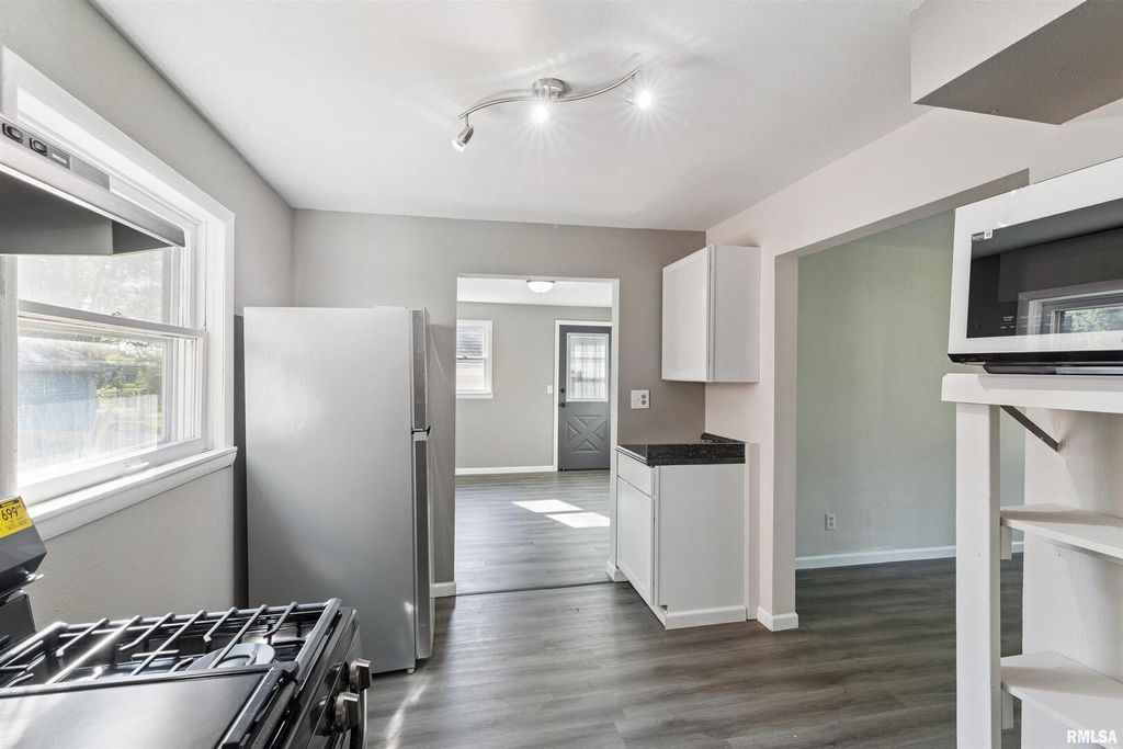 Super nice condition for the price!! This home lives larger than one would think! See attached floorplan. Two bedrooms on the main floor and two are finished in the climb-up attic.(Non-conforming) An additional room could be used as needed for a nursery or office space. Many updates recently completed-- All walls freshly painted, new interior and exterior doors, updated bathroom, new kitchen cabinets and appliances, and all new flooring. A large portion of the yard is fenced for the kids and pets. You'll enjoy the high efficiency gas furnace, 40 gallon water heater, and 100 amp electrical service, all near Knox College.