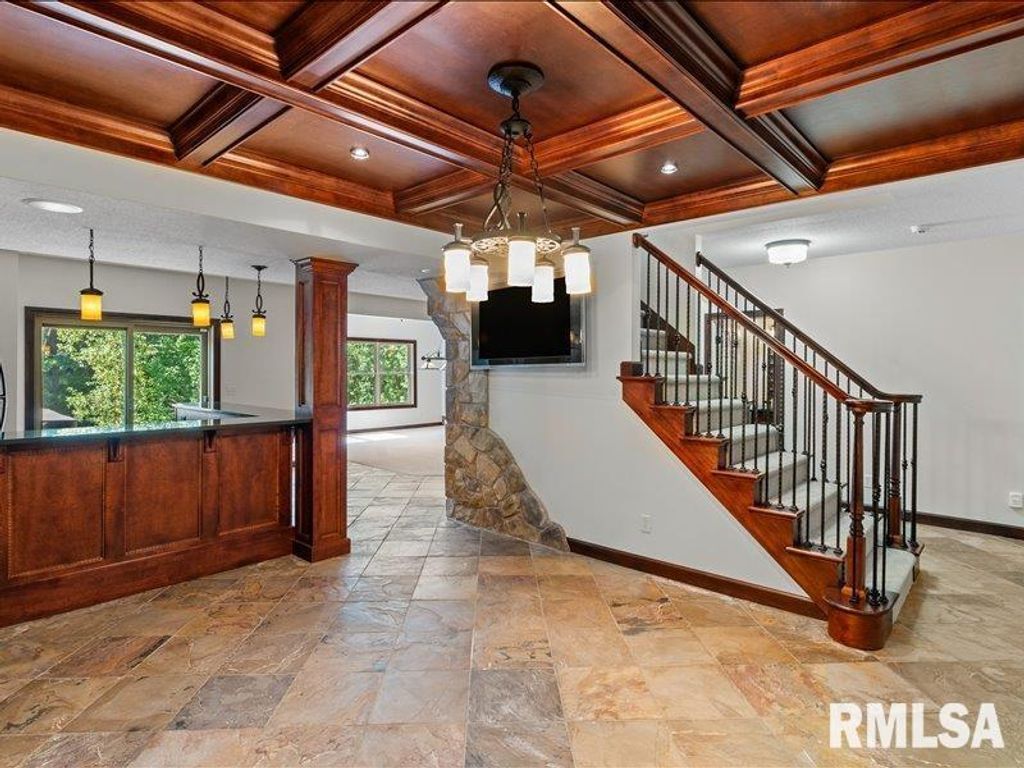 Luxury meets function in this well thought out 4-bedroom home located near PV Elementary school and boasts amenities for enjoyment on every level. The entry way welcomes you with open staircase to the 4 bedrooms. The formal Dining room and Living room flank the entrance. A few steps in brings you to the family room off the kitchen with informal dining room and Sun room, displaying the wooded view through the large windows at the rear of the home. A cozy den/office is nestled off the family room with hard wood floors, floor to ceiling shelving and a coffered ceiling. Sure to make any needed task more relaxing. The Luxurious kitchen has 2 ovens and a warming drawer, zero depth refrigerator, newer dishwasher, microwave and quartz counters including the island. A convenient laundry room and drop zone are on the way to the attached 3 car garage. The four bedrooms upstairs begin with a primary suite, attached to an expansive ensuite and walk in closet. The second bedroom contains a similar ensuite feature and walk-in closet. Just down the hall are two bedrooms that share an additional full bathroom. Leaving the basement, where you are sure to want to enjoy the Rec room, Billiard area, theatre with drop down screen and projector, exercise room, kitchenette, and a wine cellar, as well as a full bathroom. A Hot Tub, Gazebo, Fire pit pad and multi level deck plus a Private patio all offered out back! One or more photos have been virtually staged and are labeled as such.